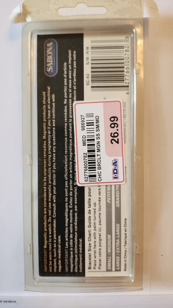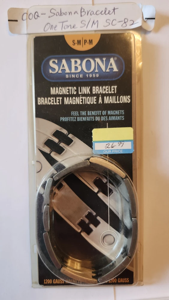 I'm selling a brand new Sabona Magnetic Link Bracelet in size small/medium. It's still in its original packaging. The original price was $26.99. It's a one-tone bracelet with 1200 gauss magnets. This would be a great gift!