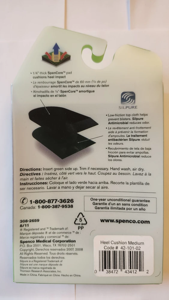 I'm selling a new pair of Spenco Rx Heel Cushions in medium size. They are designed to cushion heel impact.