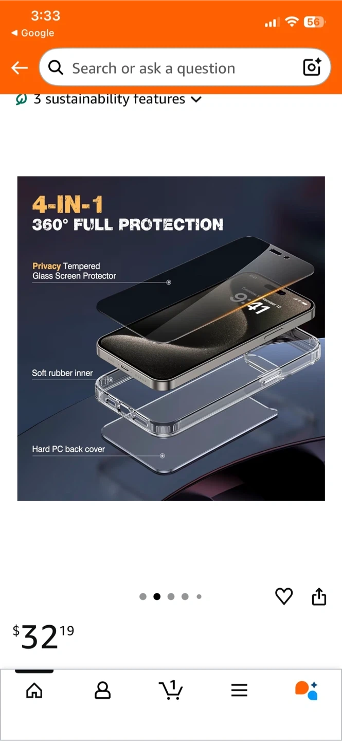 Selling a brand new Diaclara case for the iPhone 15 Pro Max! This clear case offers 4-in-1, 360° full protection, including a privacy tempered glass screen protector, soft rubber inner layer, and hard PC back cover. It features 1.5mm raised screen edges and 3.8mm raised camera edges for extra protection. Originally bought for $32.19!