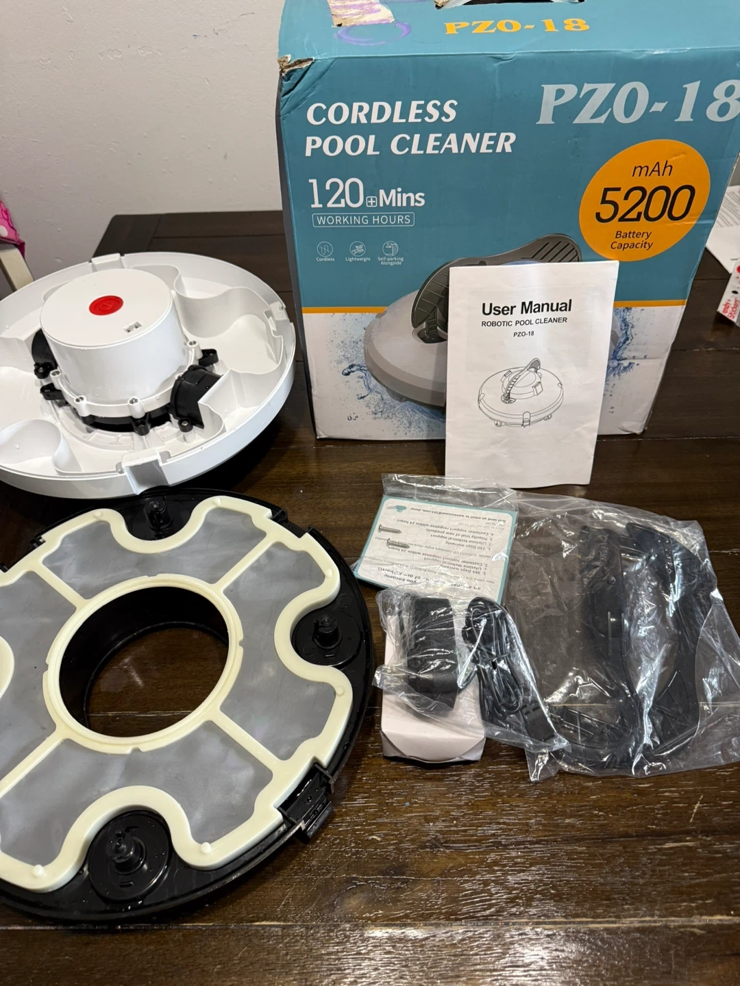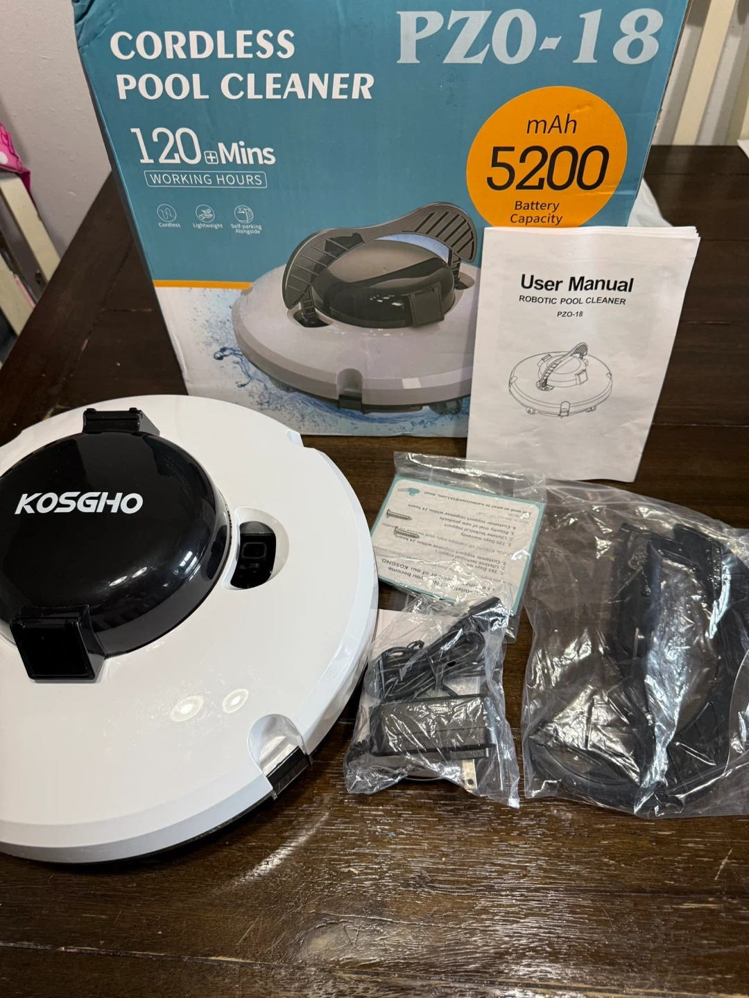 Selling a KOSGHO Cordless Robotic Pool Cleaner Vacuum! It comes with dual motors and self-parking for flat ground pools.