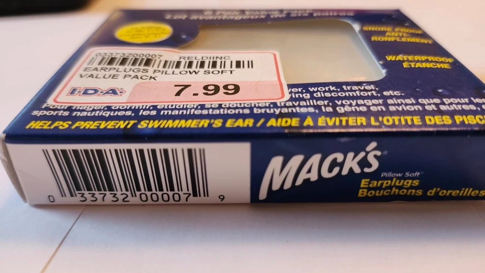 Mack's Pillow Soft Earplugs are great for sleeping, studying, or travelling. They help prevent swimmer's ear and are waterproof. The box says it's a 6-pair value pack and originally cost $7.99.