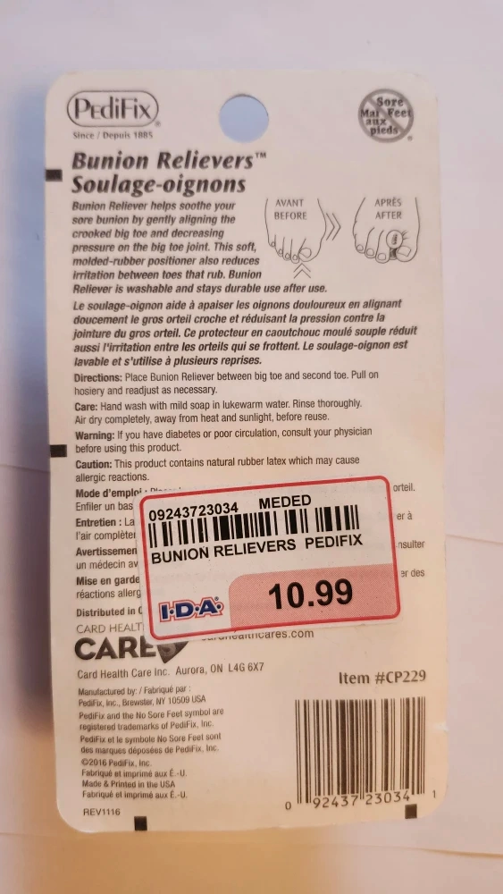 Selling a brand new set of Pedifix bunion relievers, still sealed in the original packaging! These are designed to soothe bunions by gently aligning the crooked big toe and decreasing pressure on the big toe joint. They also reduce irritation between toes that rub. Originally bought for $10.99 at IDA