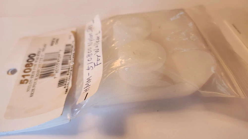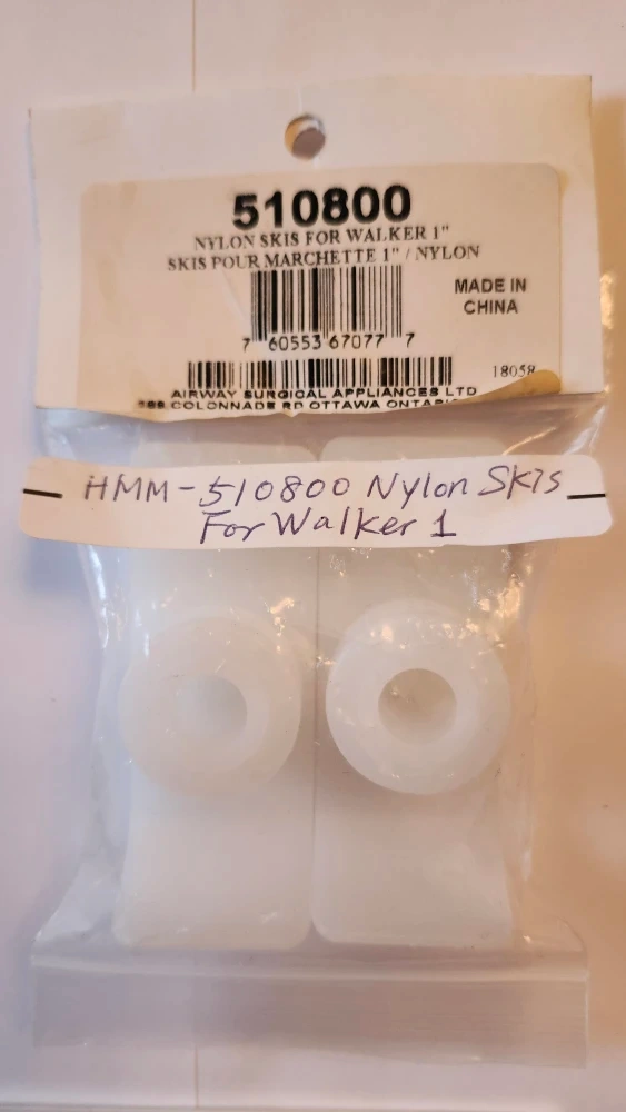 Selling a set of Airway Surgical nylon skis for a 1" walker. These are brand new in the package. The original price on the packaging says $16.99