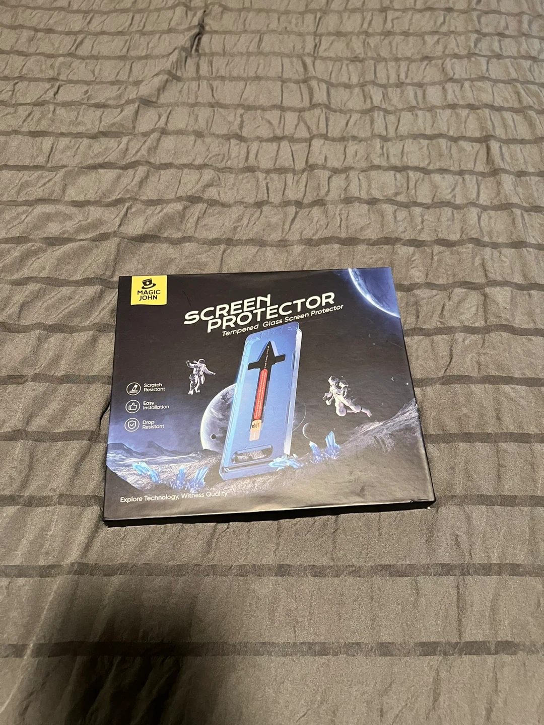 Selling a brand new Magic John Tempered Glass Screen Protector for IPhone 13 pro max. This screen protector is scratch-resistant, easy to install, and drop-resistant. It comes with accessories including a wet wipe, microfiber cloth, and dust removal sticker. Box is included!