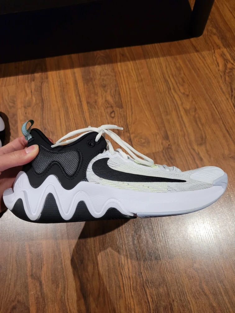 Selling a pair of Nike Giannis Immortality 3 basketball shoes! They feature a white, black, and light green colour scheme, perfect for on the court or casual wear. These shoes are designed for lightweight performance and comfort.
