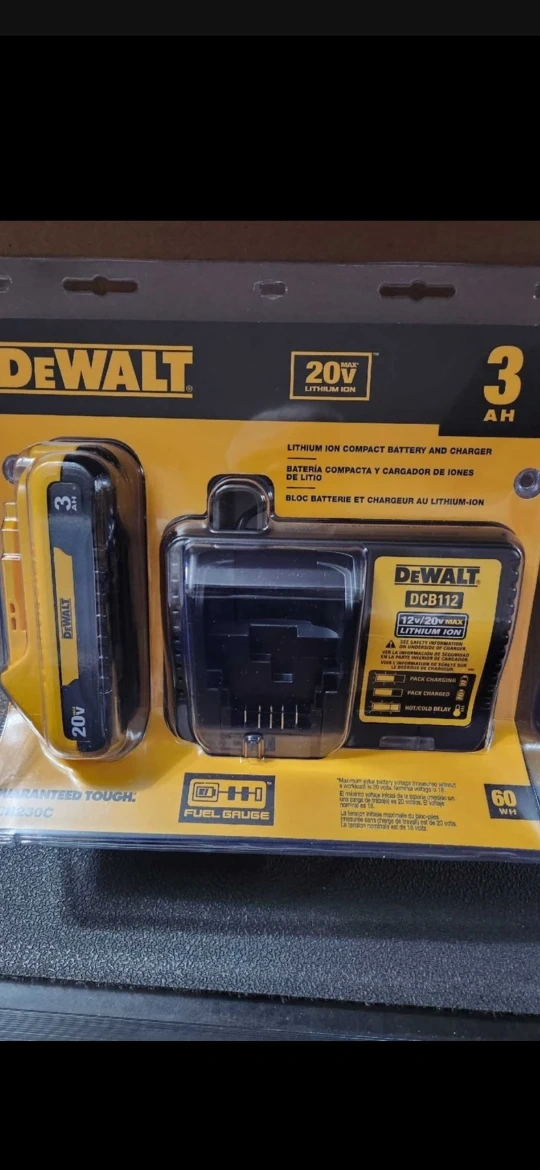 Selling a brand new DeWalt 20V MAX 3Ah Lithium Ion Compact Battery and Charger! This includes the battery and charger, and it's all in the original packaging, Brand New