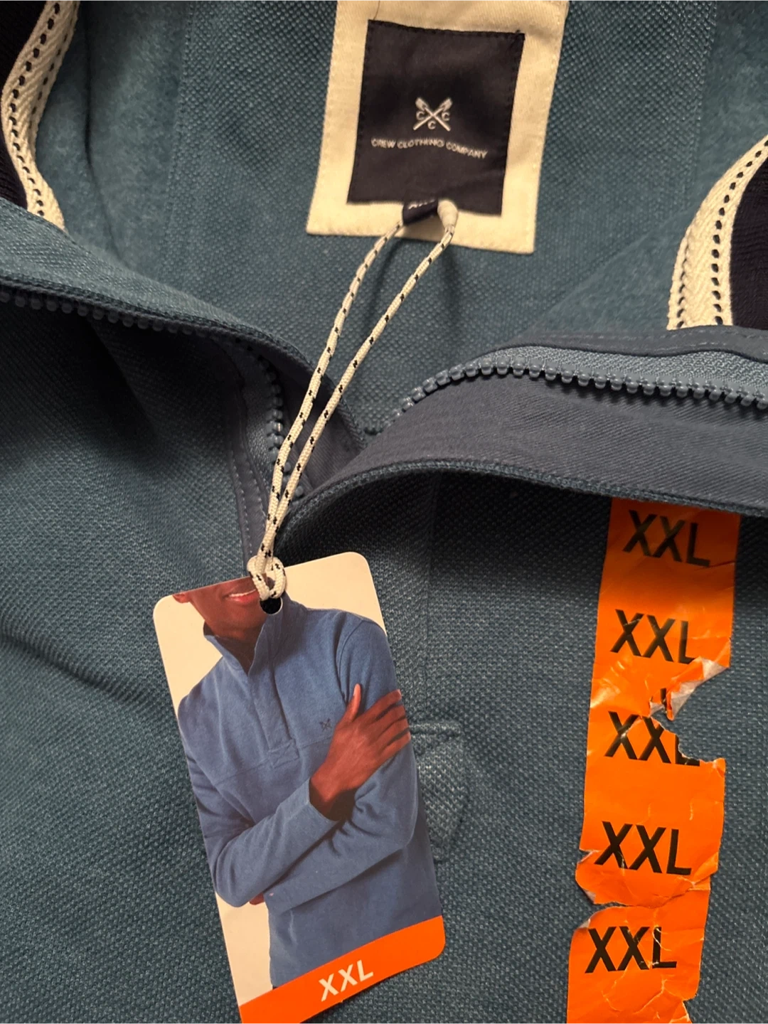 Selling a brand new Crew Clothing Company pullover in size XXL! It's a beautiful blue colour and still has the tags attached. Perfect for layering or wearing on its own