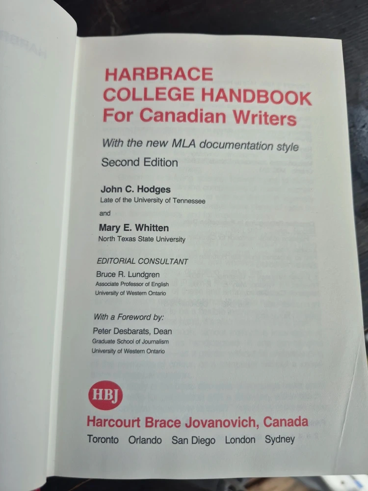 Selling a copy of the Harbrace College Handbook for Canadian Writers, Second Edition. It's a helpful guide for anyone looking to improve their writing skills!
