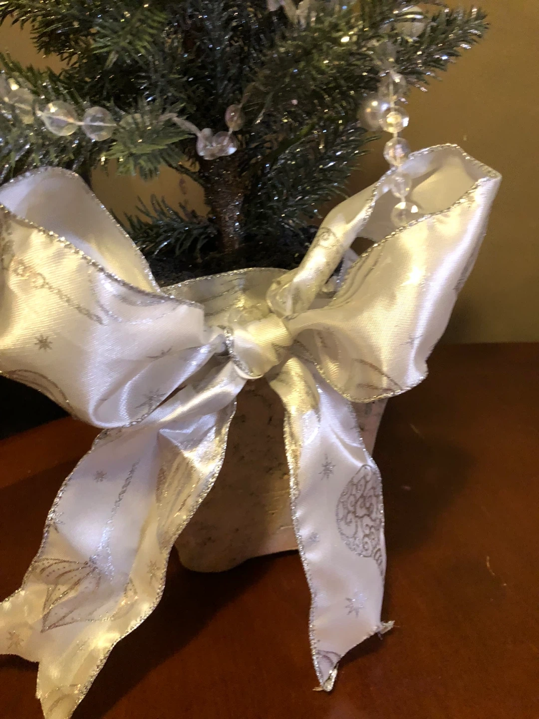 ✨ONLY $10!!!🌟 Festive Christmas tree, perfect for adding a touch of holiday cheer to a small space! Good for Table Top or a porch steps. It's decorated with pinecones, white faux pearls , clear beads, and a pretty white bow with silver accents. 🎄❄️Put some sparkle in your season! Can be used outdoors as well !!