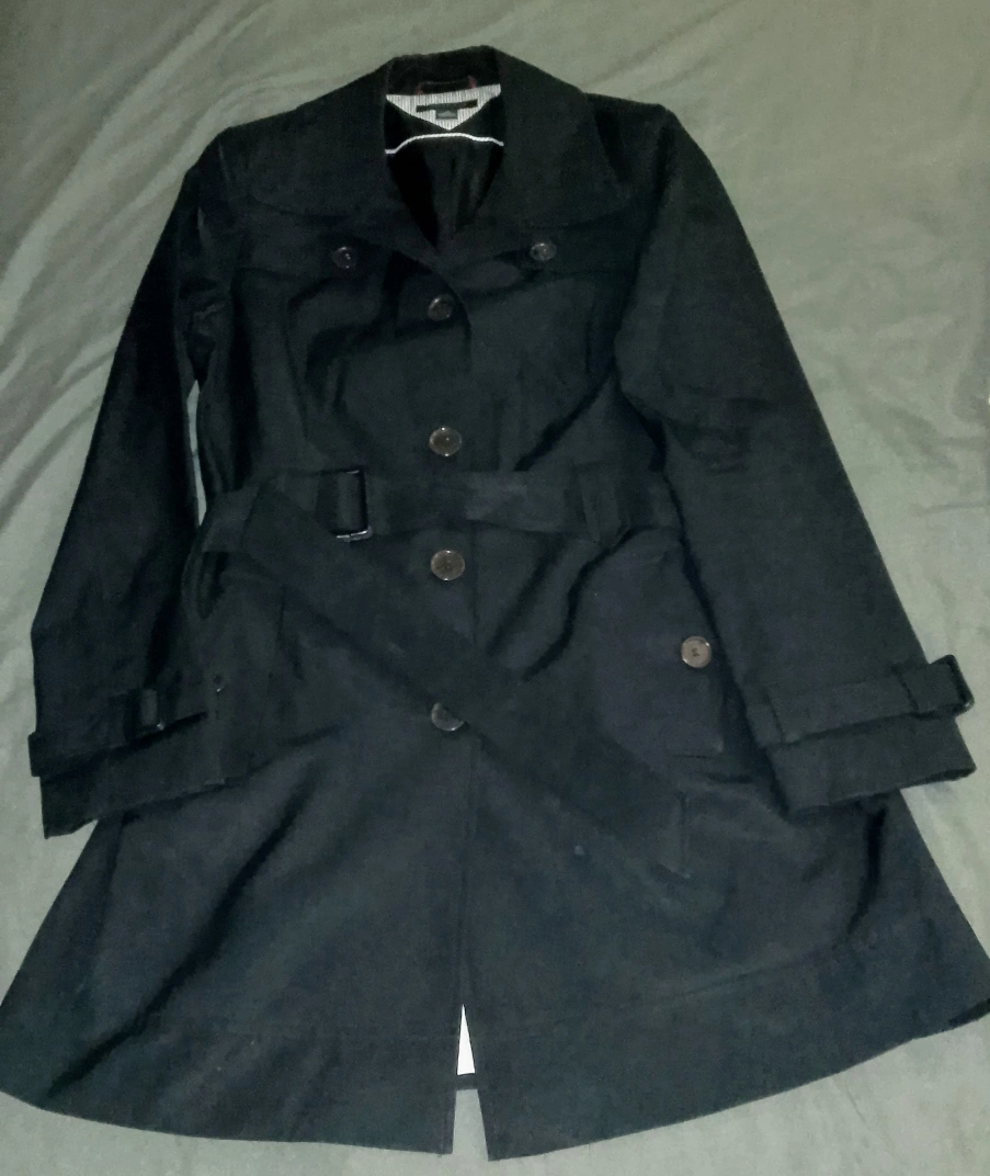 Selling a Tommy Hilfiger trench coat in a classic black colour. It's a size S/P and in great condition!