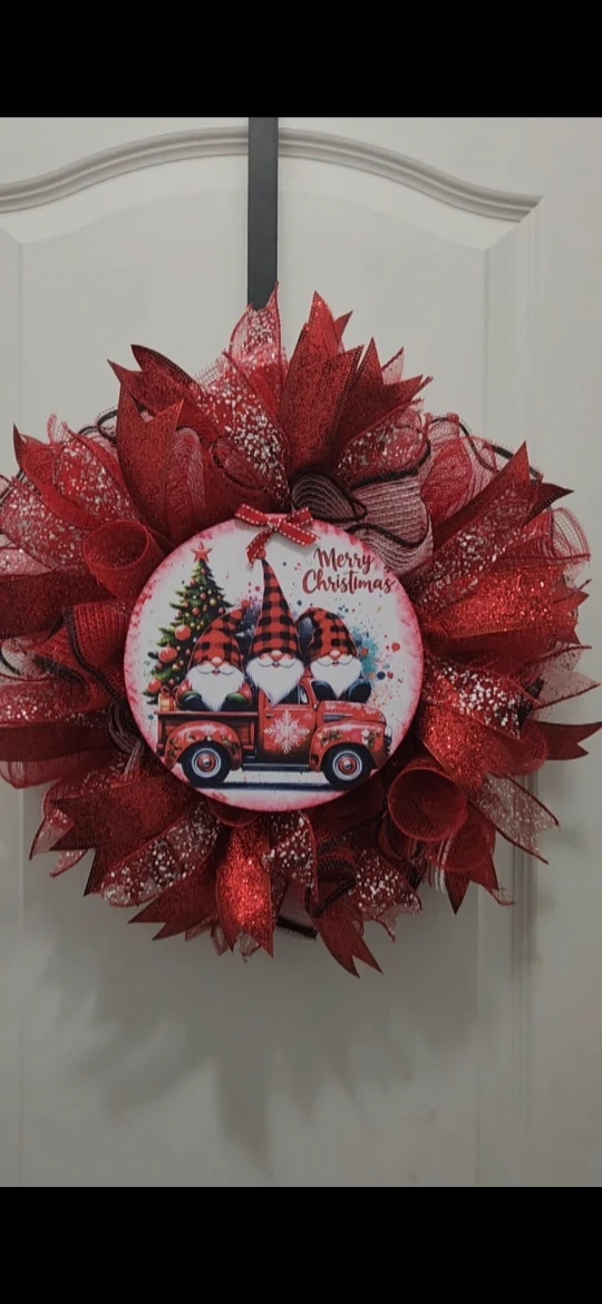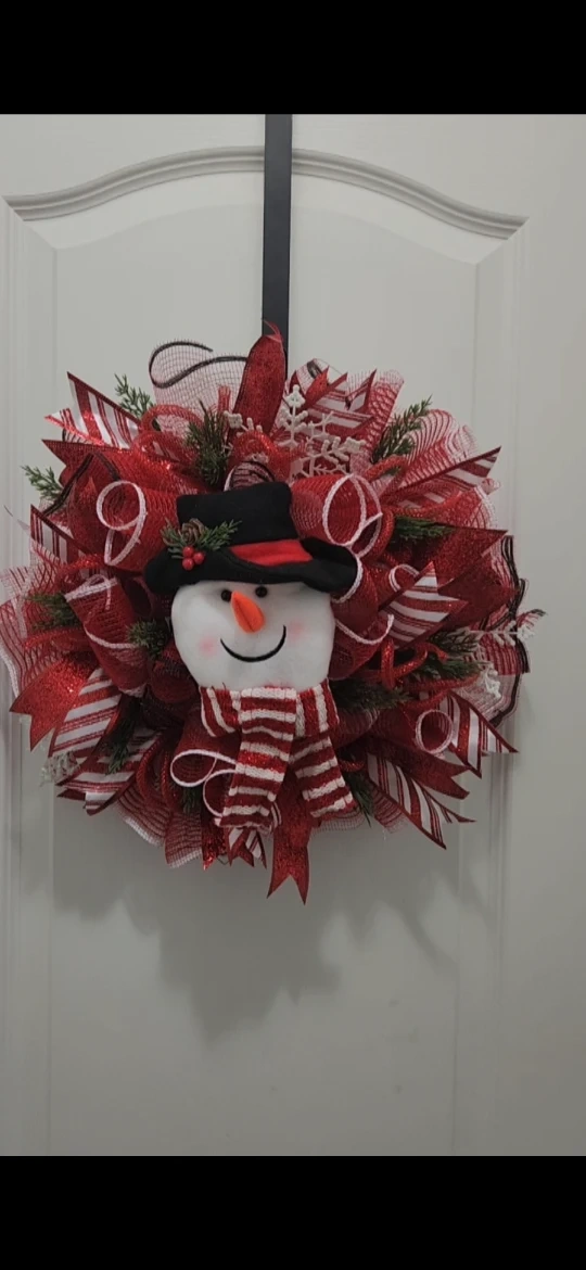 Festive Christmas wreath with a snowman and a Merry Christmas themed gnome design. Perfect for adding a touch of holiday cheer to your door or wall this season