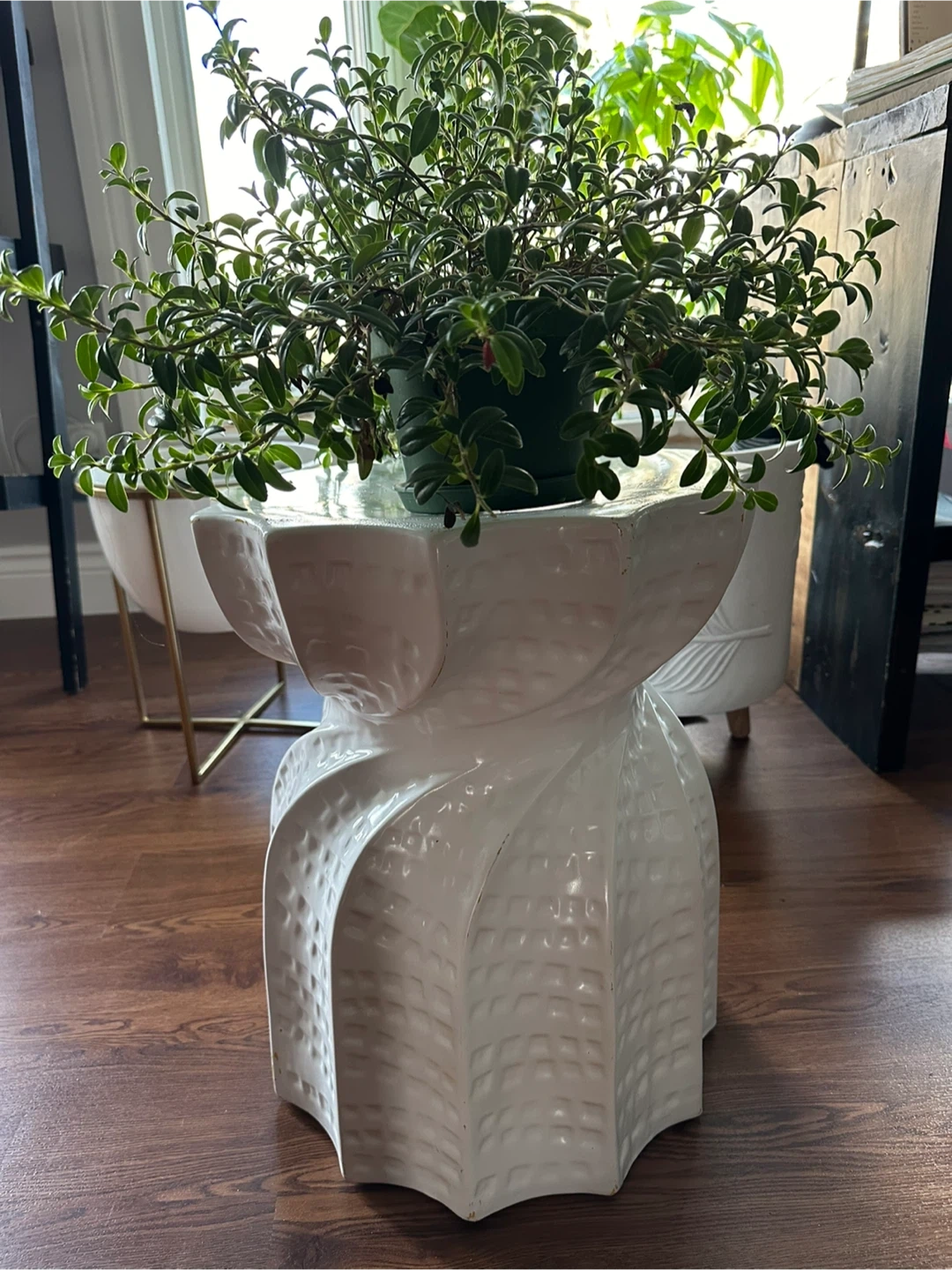 Selling a lovely white ceramic accent table! It's in great condition and would look perfect in any room. It's a unique piece that adds a touch of elegance to your space