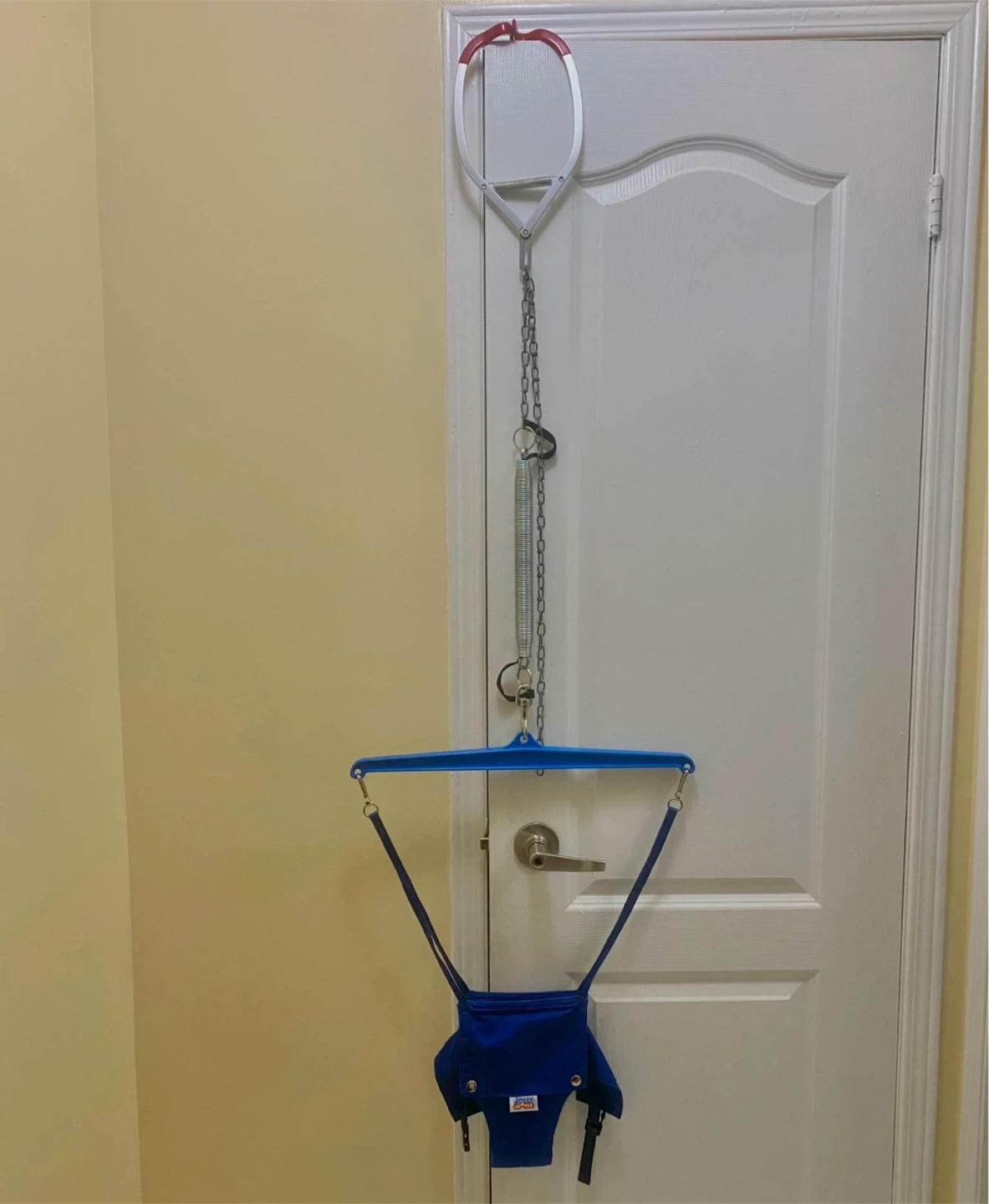 Selling a blue Jolly Jumper baby exerciser in great condition! Perfect for keeping your little one entertained and active. Recommended age range for this item is suitable for babies who can hold their head up with full neck control until maximum 28 lbs. It's a great way to help them develop strength and coordination