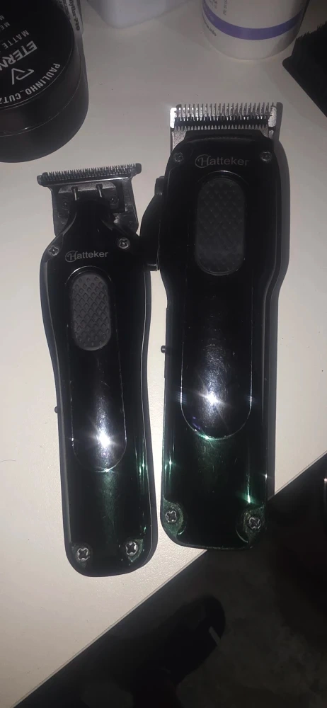 Selling a Hatteker hair clipper set in like-new condition! This set includes both a larger clipper and a smaller trimmer, perfect for all your grooming needs. They are black and in great shape.