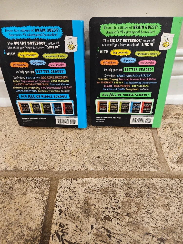 Selling two Big Fat Notebooks: Everything You Need to Ace Math and Science in One Big Fat Notebook. These are complete middle school study guides