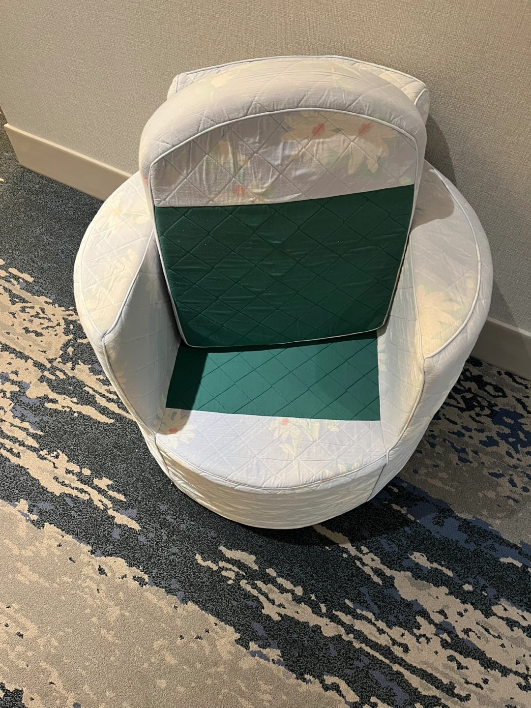 Selling a comfy swivel barrel chair with a floral pattern! It's perfect for adding a touch of charm to any room. The chair is in good condition and ready for a new home. It features a round base and a cozy, cushioned seat
