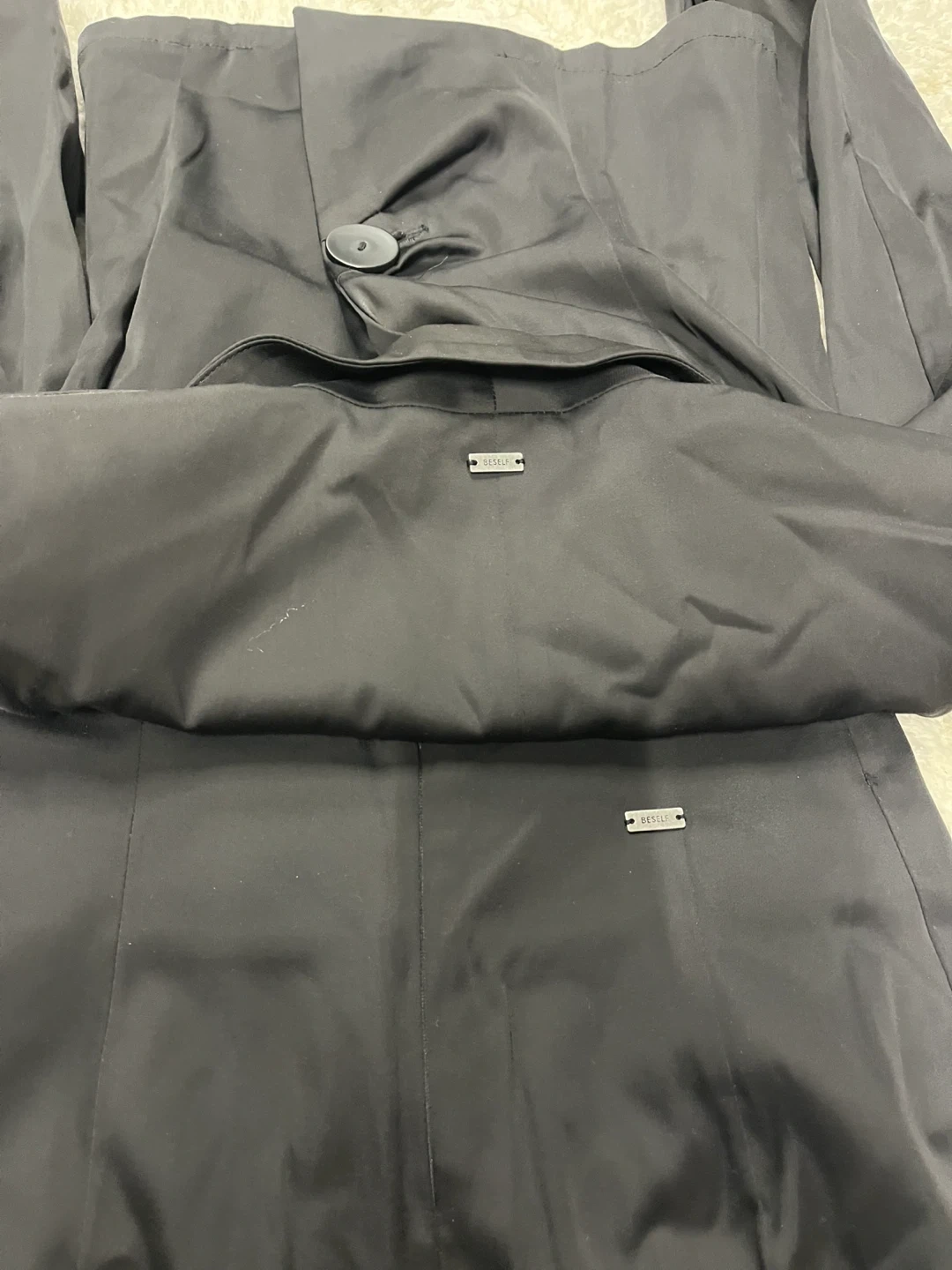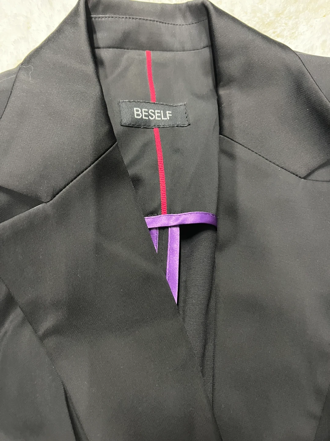 Selling a stylish black suit set from BESELF. The set is size 34 and made of 50% cotton, 47% polyester, and 3% elastane/elastan