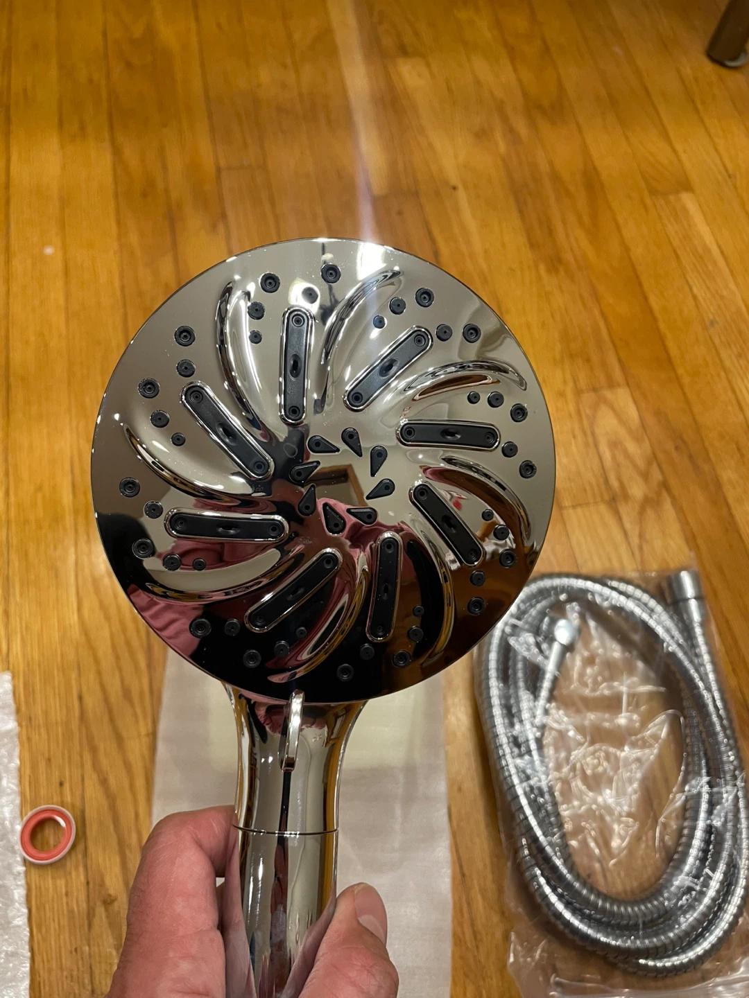 I have a new shower head with a hose and connector for sale! It's still in its original packaging. This set includes the shower head, a flexible hose, and a connector, all ready for easy installation