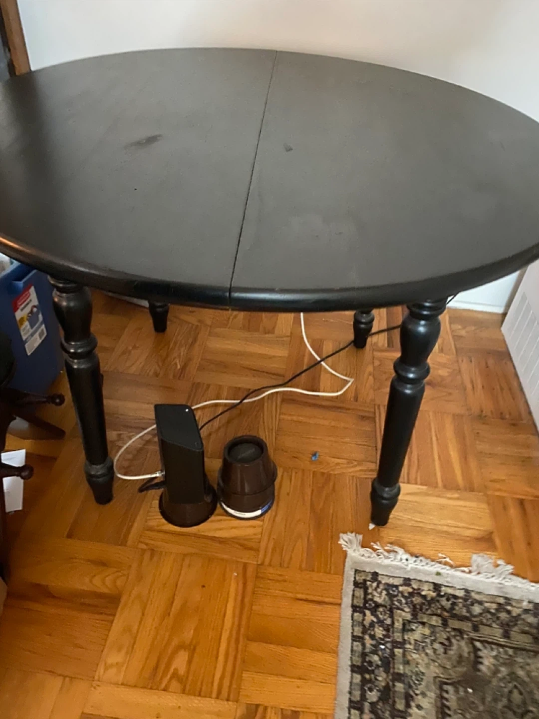 Selling a round dining table with 4 matching chairs. The set is in good condition and perfect for a small dining area or kitchen. The table and chairs are black, giving them a classic and versatile look that fits well with any decor. Chairs can be purchased separately. A great addition to your home!