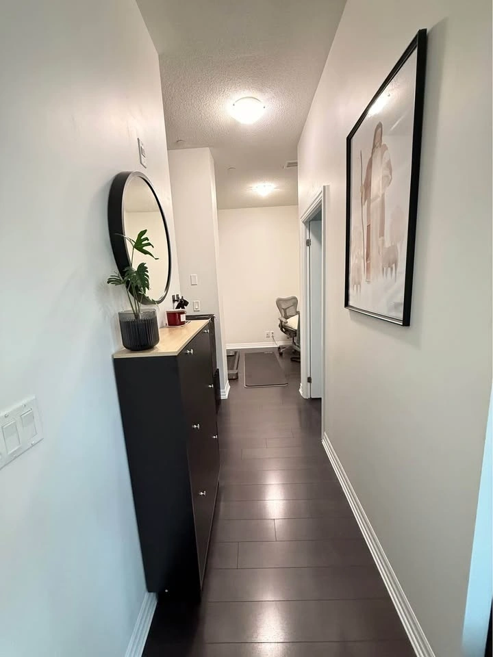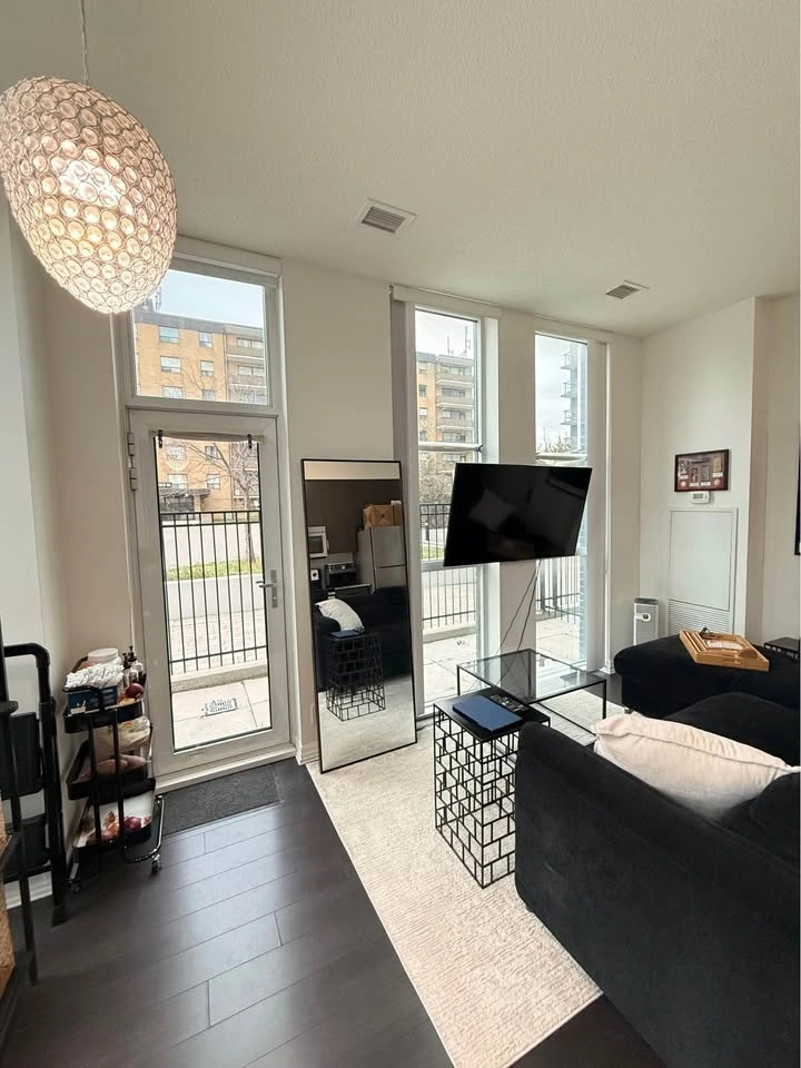 Bright, modern 1 Bed + Den corner unit in Cloud 9 Condos (Etobicoke) available January 1, 2026, for $2,400/month. Includes parking and locker. Features incredible natural light, a functional layout, and rare storage. The den can easily be converted to a second bedroom. Includes stainless steel appliances, a spacious living area with walk-out to private patio, high ceilings, and in-suite laundry. Tenant covers electricity + internet. Water and heat included in rent.