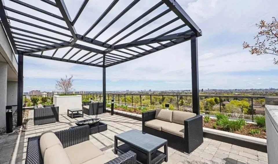 Building amenities include a fitness centre, party room, and outdoor patio with BBQ grills. Steps from TTC, West Humber Trail, grocery stores, shopping, restaurants, and highways 401/427. Close to Pearson Airport.
