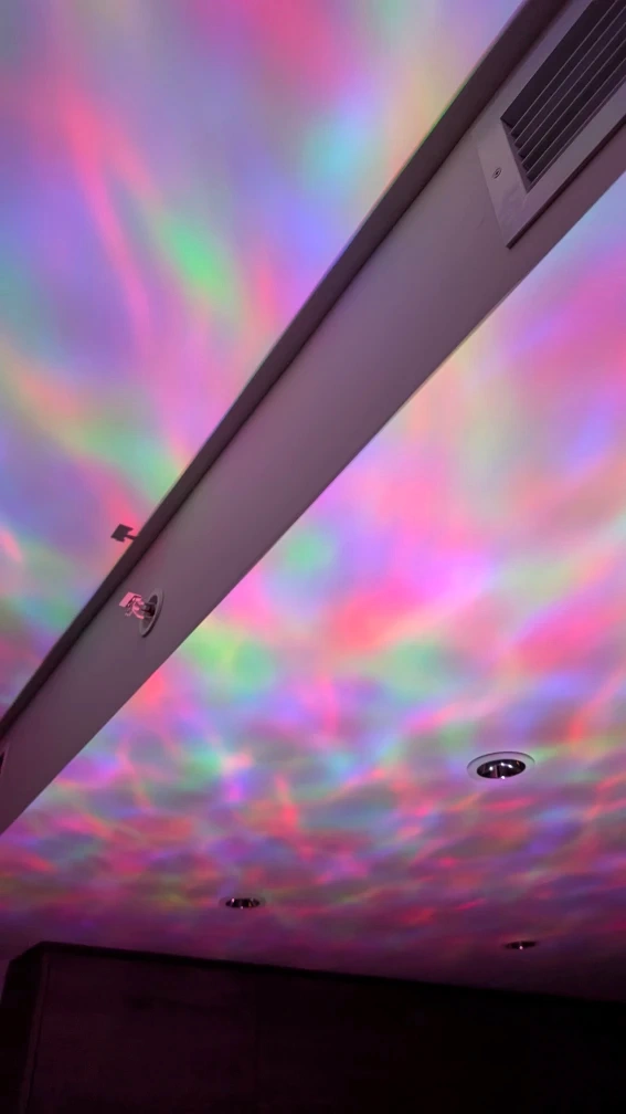 Check out this cool ocean wave projector night light! It projects colourful waves onto your ceiling, creating a relaxing atmosphere. Perfect for a bedroom or any space where you want to add a calming vibe