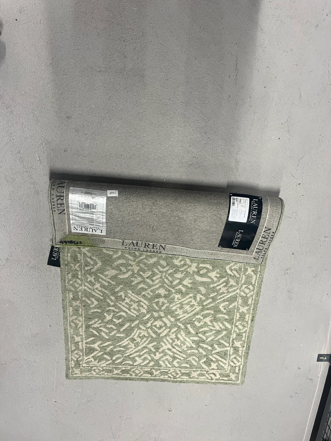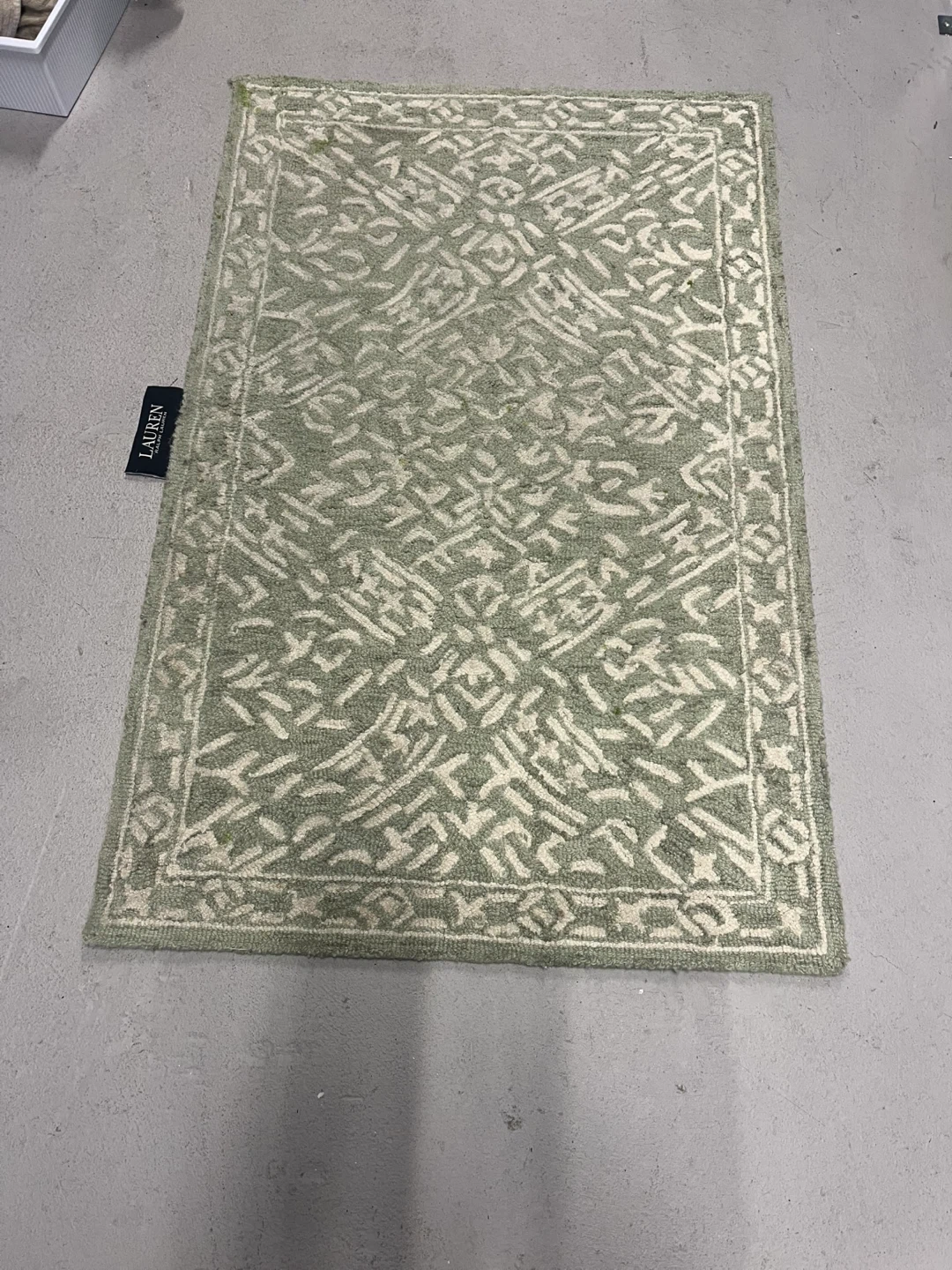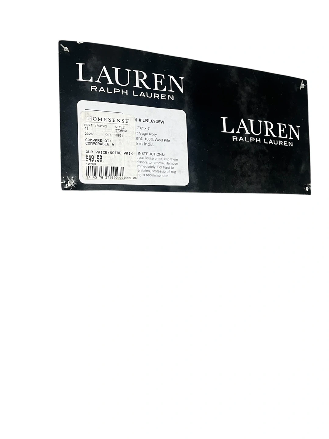 This is a Lauren Ralph Lauren HomeSense rug, sized 2'6" x 4'. It's a lovely sage ivory colour and made of 100% wool pile. The original price was $49.99