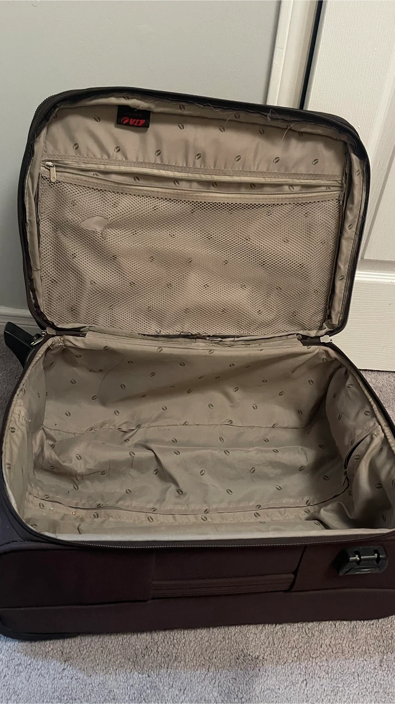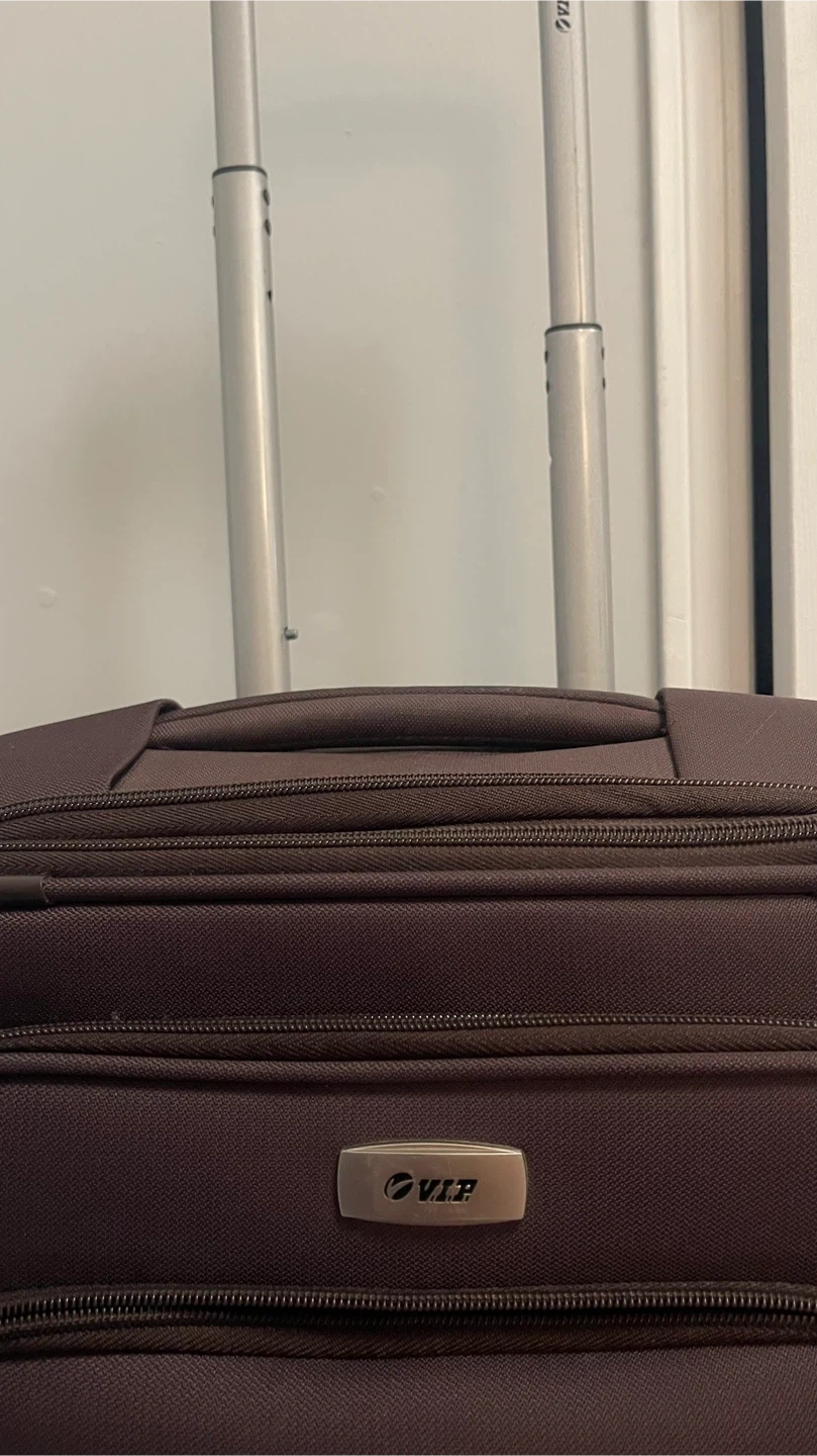 Selling a VIP luggage suitcase in a nice brown colour. It's a great suitcase for travel! The interior is in good condition with a zippered compartment.