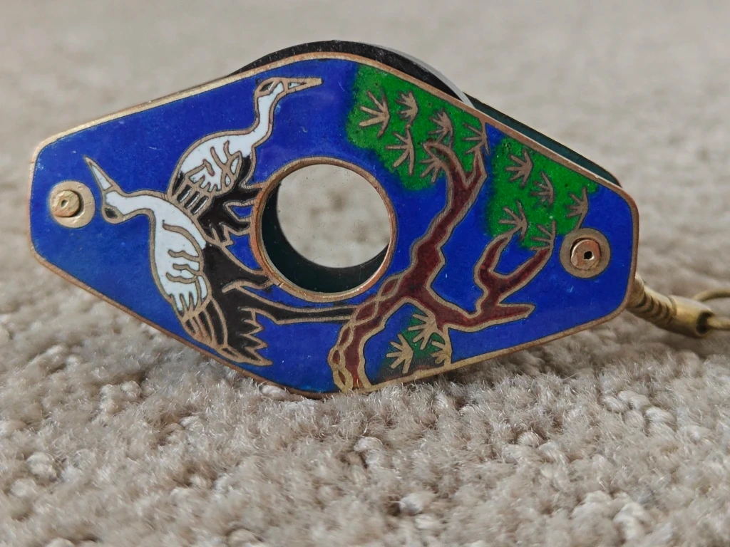 Cloisonne Enamel Pocket Magnifying Glass Asian Crane Pine Tree