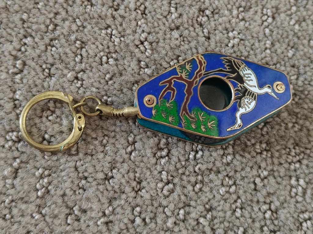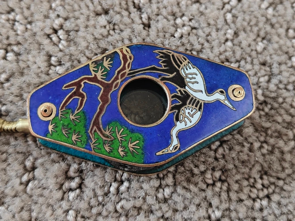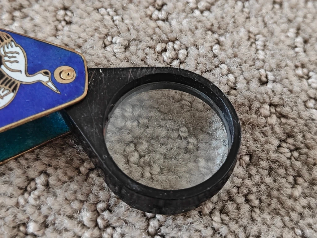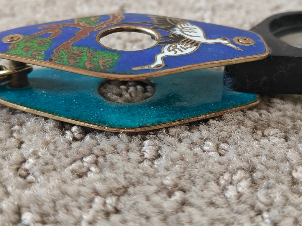 I am selling a Vintage Cloisonné Blue Enamel Pocket Magnifying Glass with an Exquisite Chinese Crane and Floral Art Design in excellent condition. Add a touch of timeless elegance and practicality to your collection with this exquisite vintage pocket magnifying glass. This piece is a beautiful example of the intricate art of cloisonné, featuring a vibrant blue enamel base adorned with a detailed Asian design.