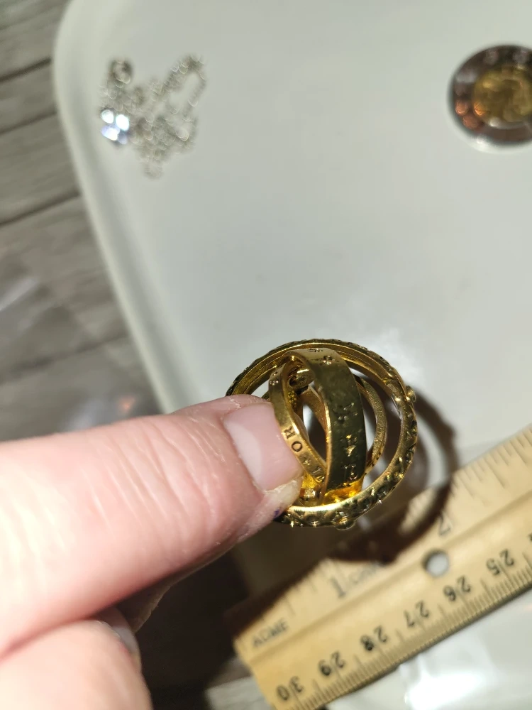 Selling a unique vintage armillary sphere ring. It's a beautiful gold colour with intricate detailing. A really interesting piece!