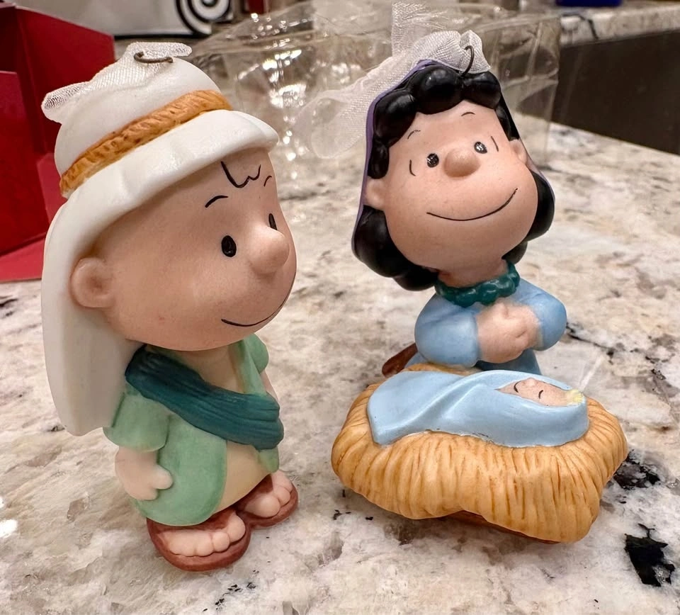 Vintage Hallmark Keepsake Ornament Peanuts Nativity set of 2. Comes with original box. Ornaments are in great shape, no chips or cracks. Probably never even been out of the box.