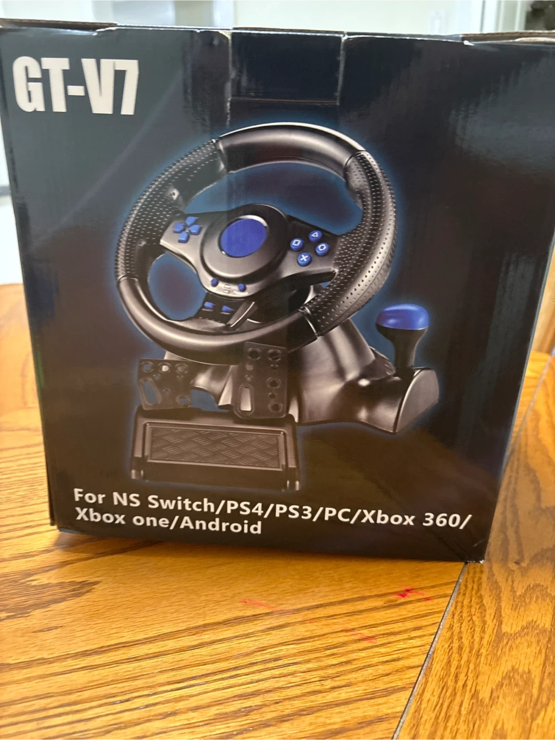 Selling a GT-V7 racing wheel that's compatible with multiple platforms like NS Switch, PS4, PS3, PC, Xbox One, Xbox 360, and Android. It comes with the box! Perfect for racing game enthusiasts