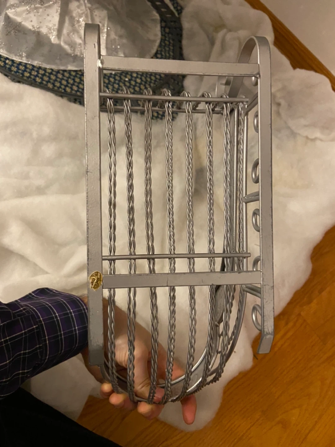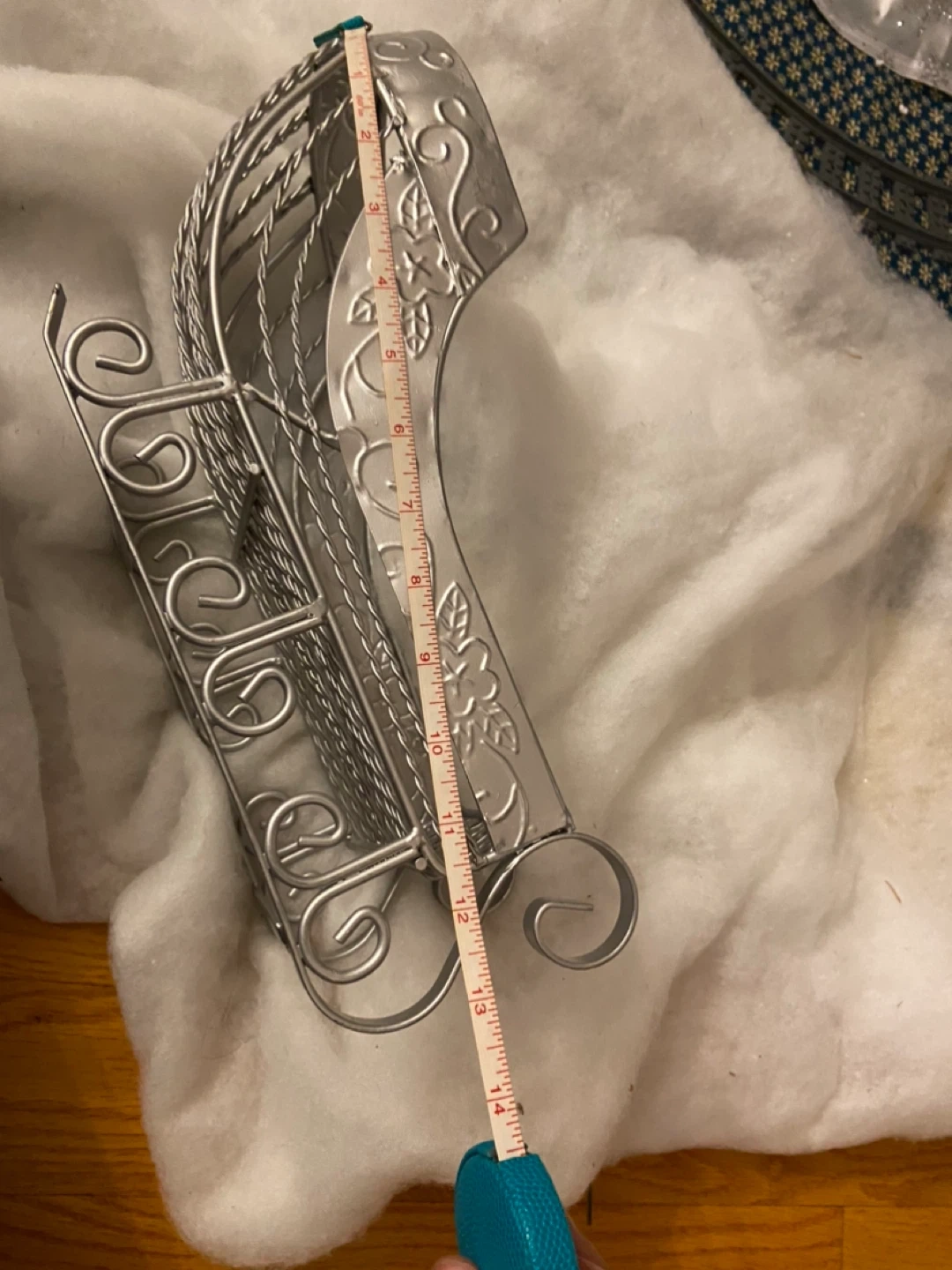 Selling a decorative silver metal sleigh! It's in great condition and would be perfect for holiday decor. It measures approximately 14 inches in height and approximately 5.5 inches in width