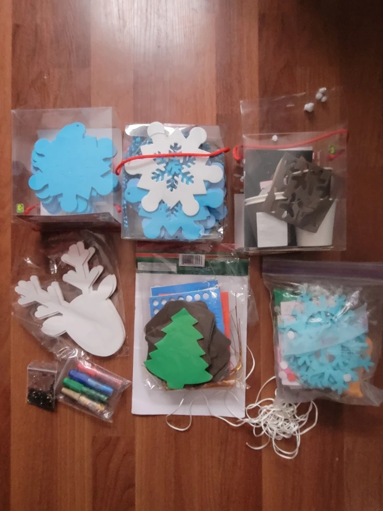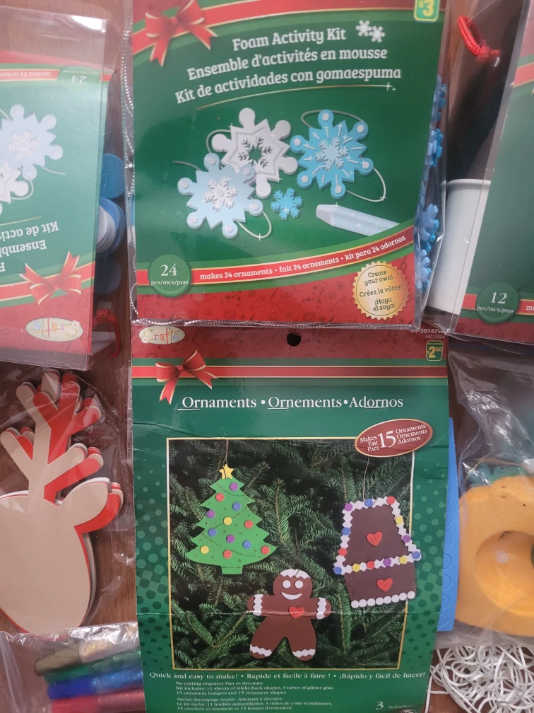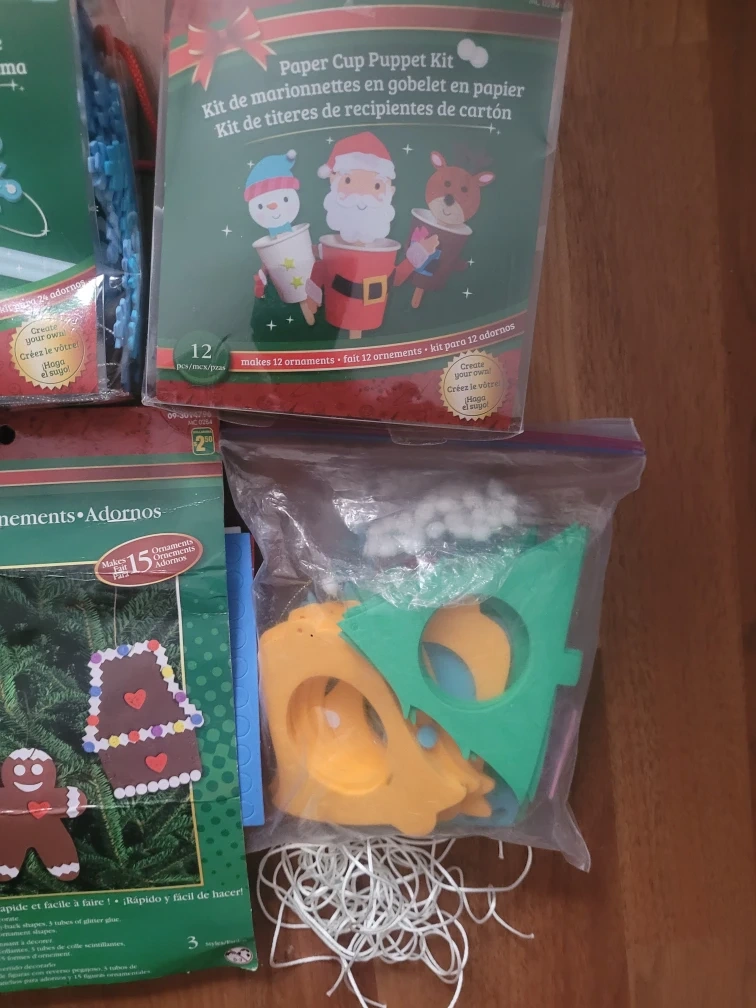 Get ready for the holidays with this assortment of craft kits! This lot includes various opened partly used kits for making ornaments, paper cup puppets, and foam decorations. Perfect for keeping the kids busy during the festive season. Everything is ready for your creative touch. Grab these kits now and let the holiday crafting begin! If the ad is up, it's available. These kits are looking for a new home!