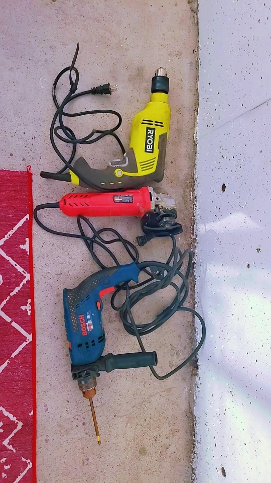 Selling a Ryobi drill, a Bosch drill and a red angle grinder. They're used and could be useful for your next project!