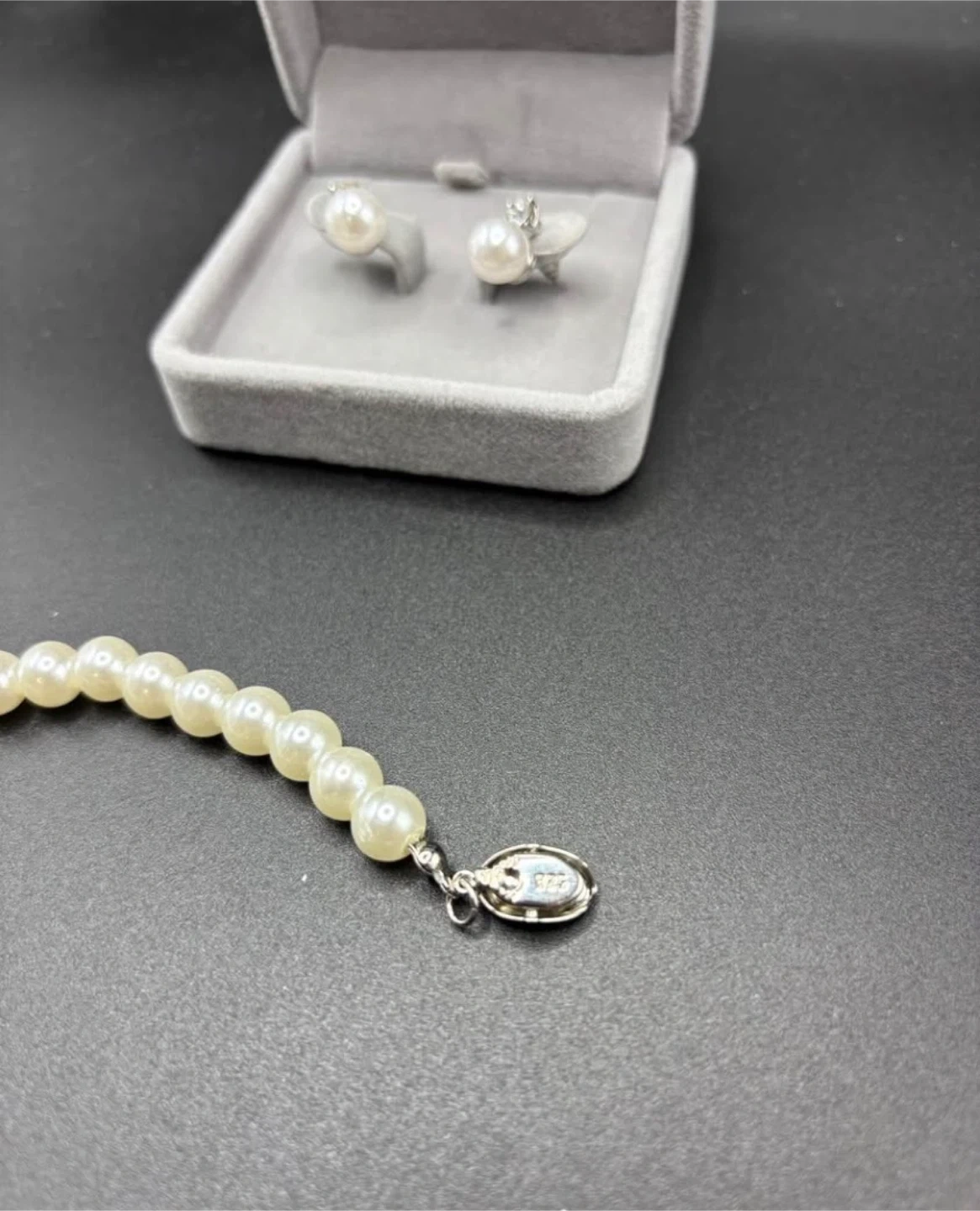 Selling a lovely pearl bracelet with 925 silver lock and earrings set! The bracelet measures about 20cm in length. It comes in a nice velvet box, perfect for gifting.