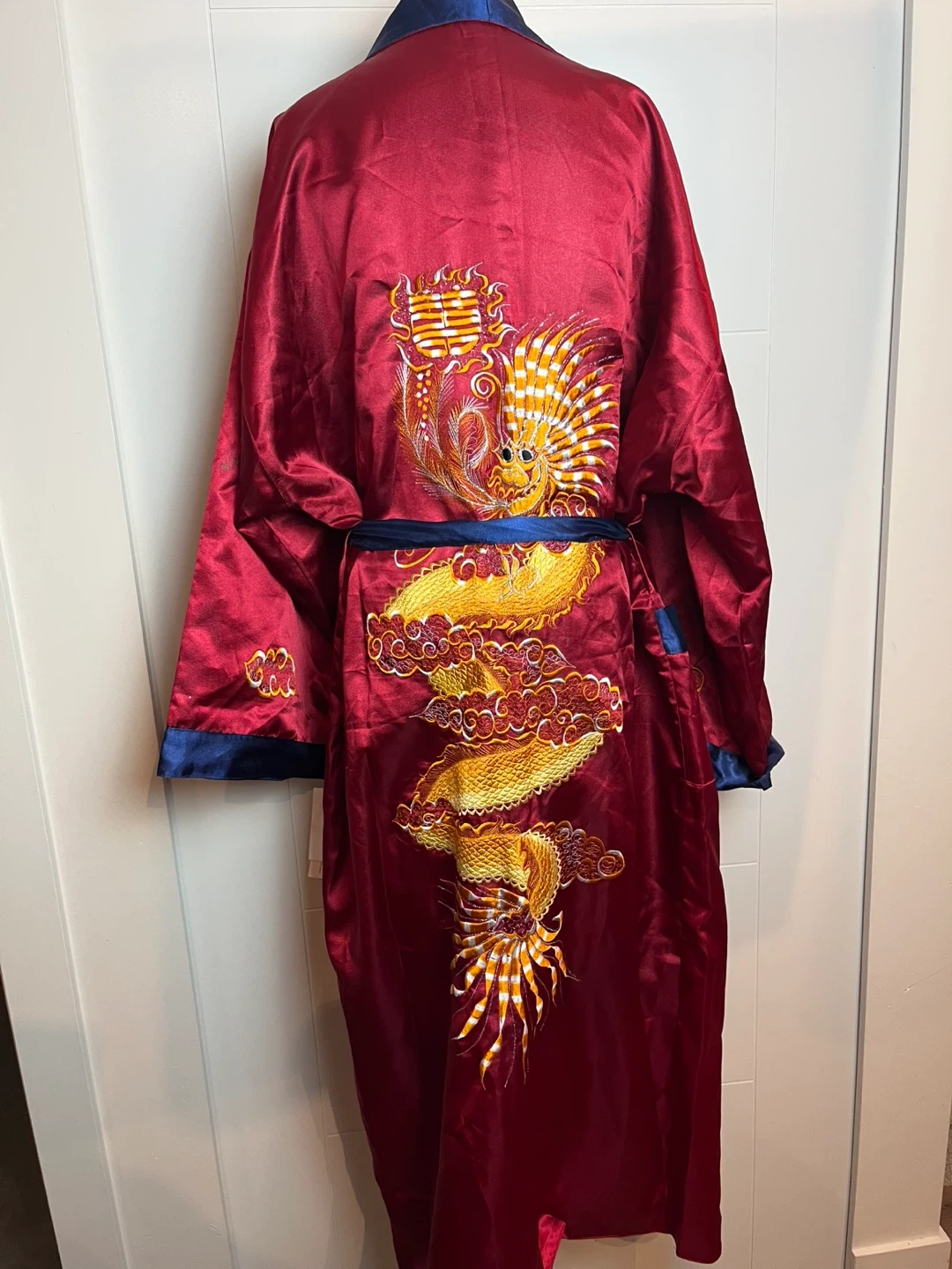 Selling a Thy Thy men's kimono in size medium! It's a beautiful red colour with blue accents and intricate dragon embroidery. The original price was $60.