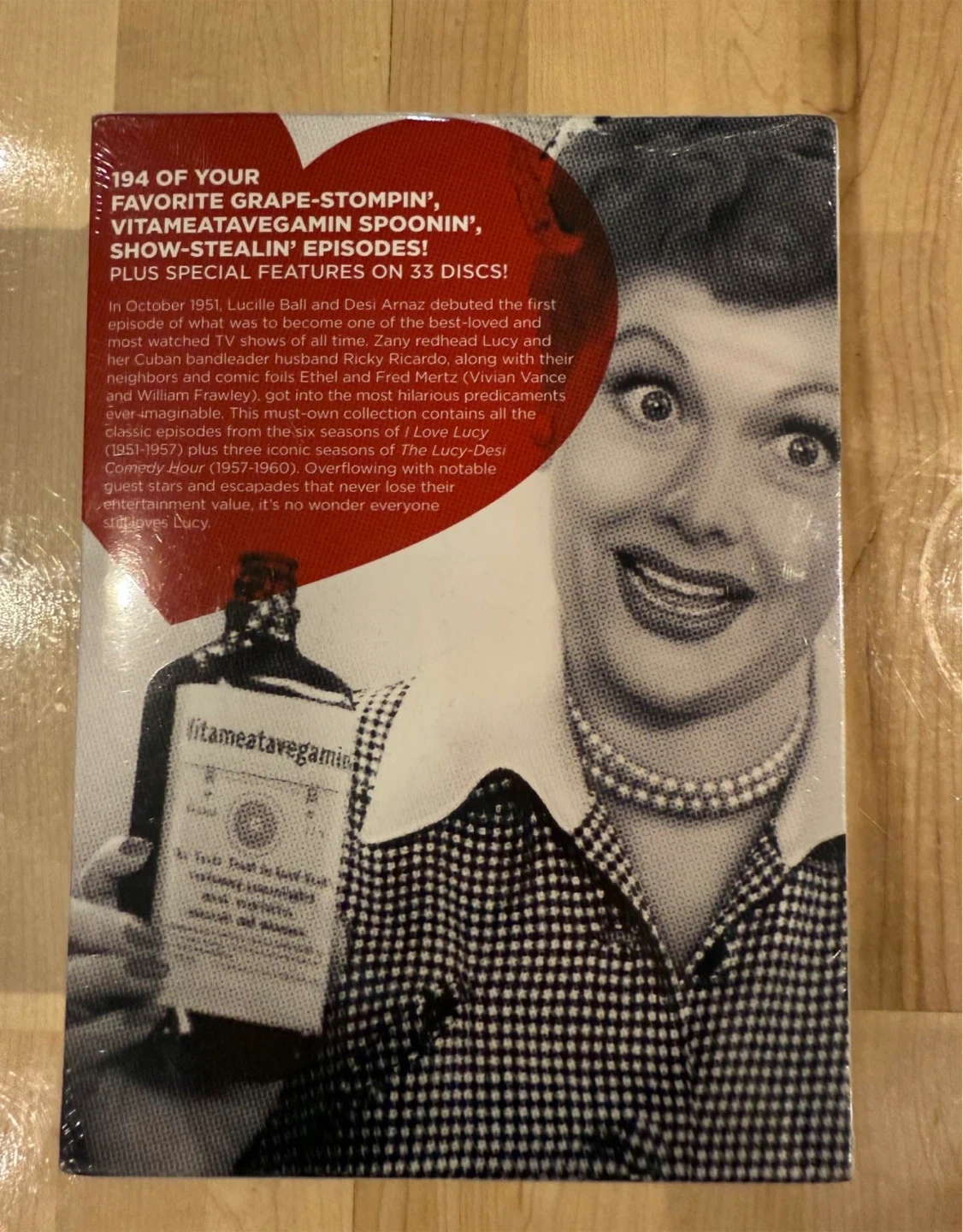 Selling "I Love Lucy" The Complete Series on DVD! This set includes all seasons and special features on 33 discs. It's a great collection for any fan of the show