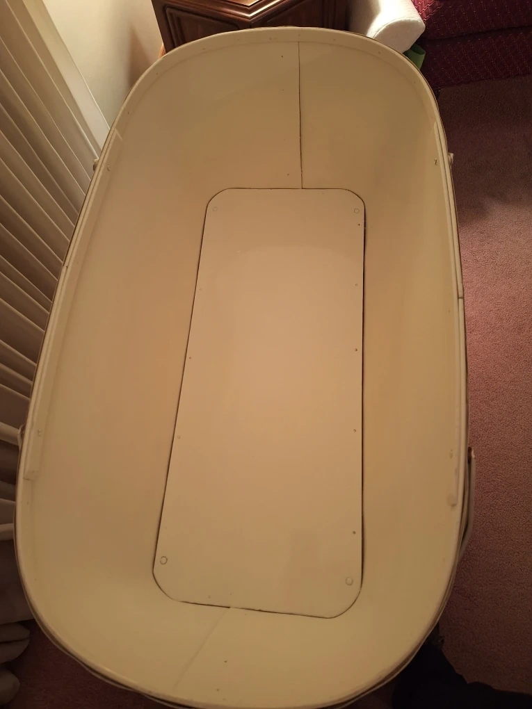 Vintage Mid-Century Wicker Bassinet with folding legs. Folding wooden legs and wooden wheels. Measures outside 34" x 19". Inside 29" x 12". Bassinet height 13". Bassinet total height 27". Excellent condition with minor scratches on the handles. Comes in the original box. Does not include mattress and bedding. Pickup Scarborough Pharmacy and Ellesmere area.