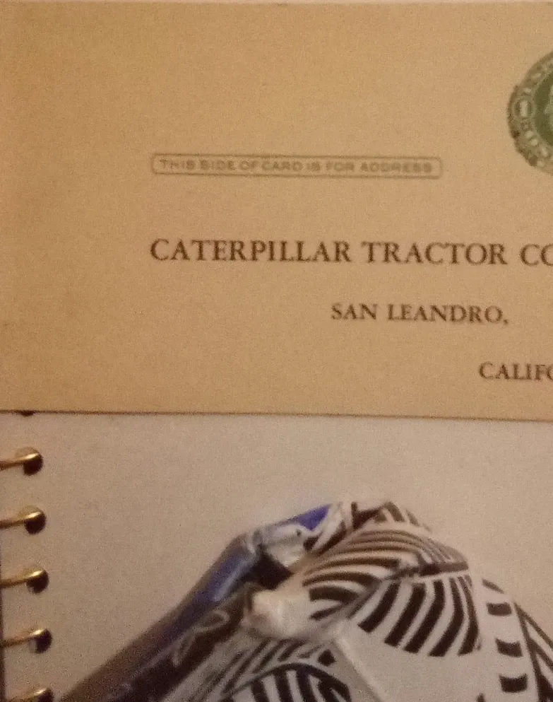 Selling a vintage postcard from Caterpillar Tractor Co. from San Leandro, California. It's a neat piece of history!