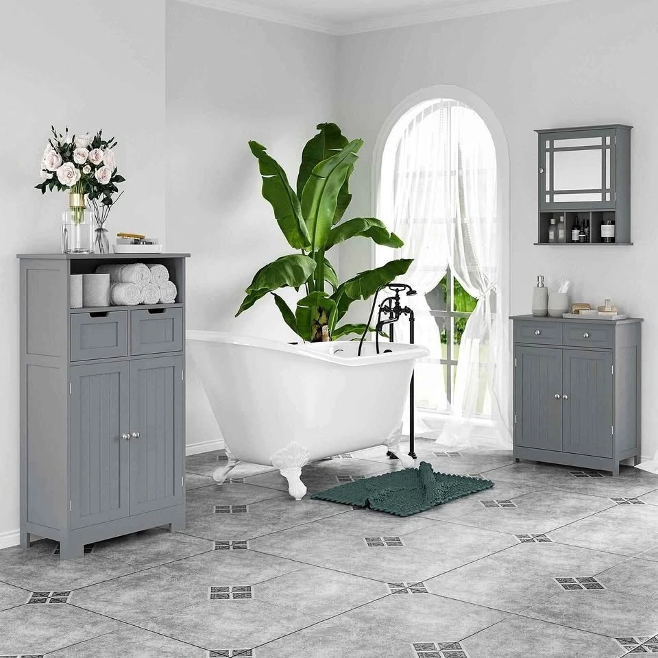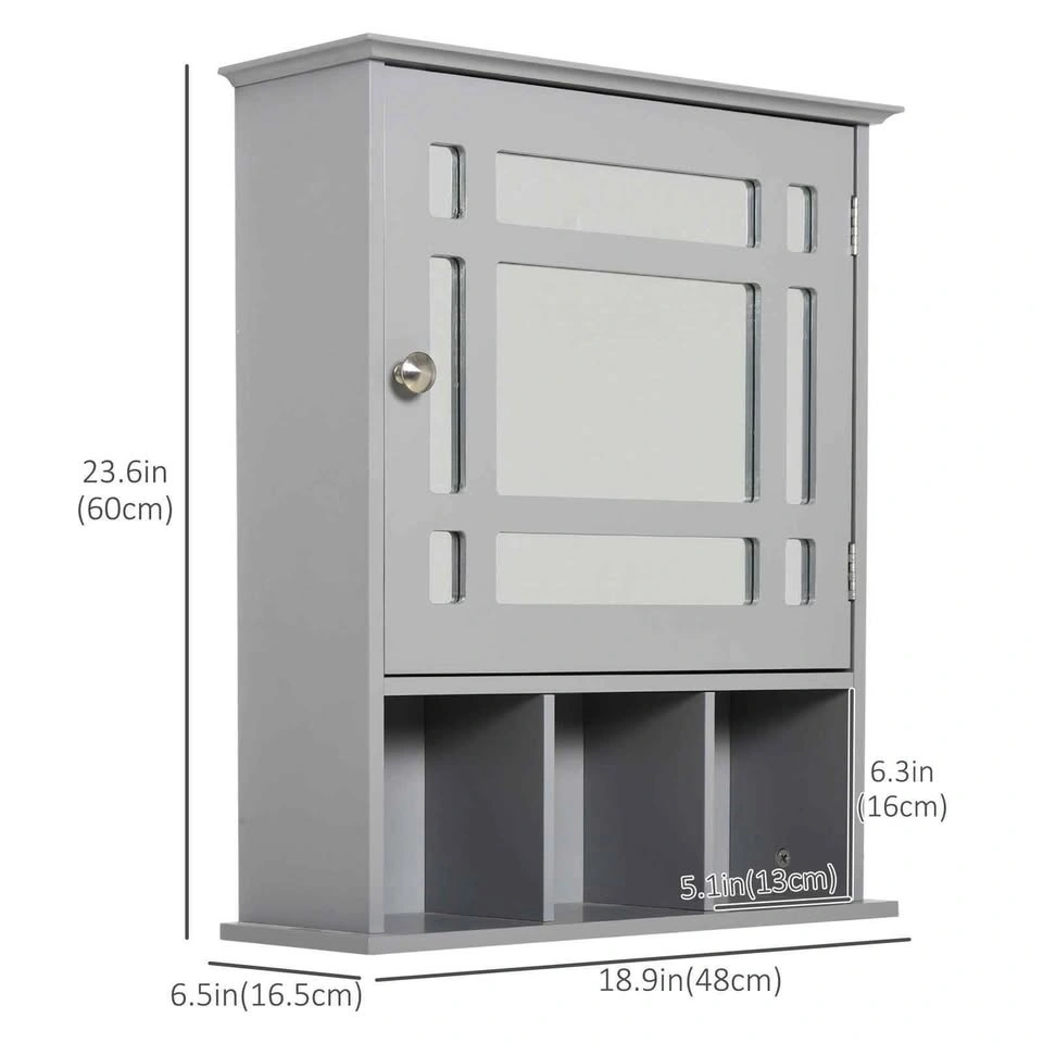 kleankin Bathroom Mirror Cabinet, Wall Mounted, Grey