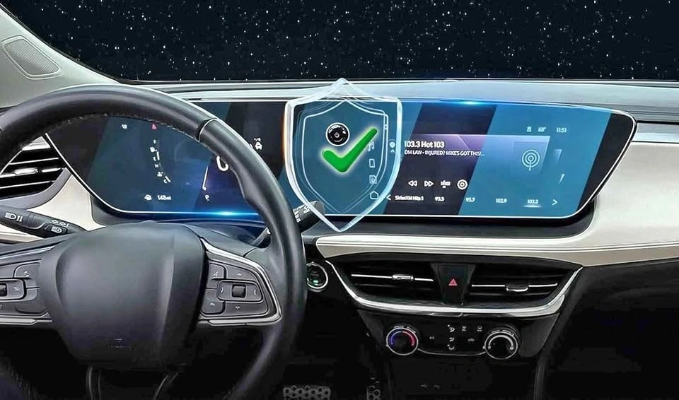 Screen protector set for 2024-2025 Buick Encore GX (Preferred, Sport Touring, Avenir) trims. Designed for both the 11-inch infotainment touchscreen and 8-inch dashboard display. These nano plastic films guard against scratches, fingerprints, dust, and water.