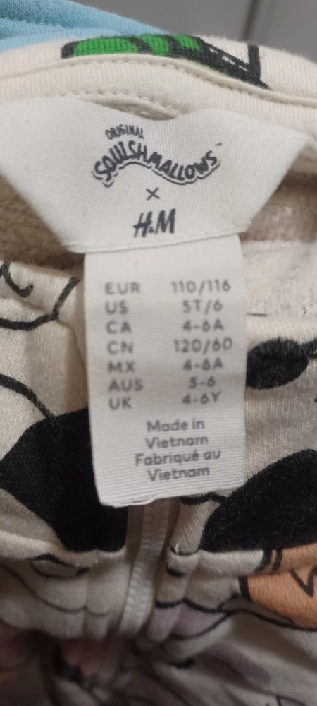 Selling a cute Squishmallows x H&M set in size 5-6. The set includes a zip-up hoodie and matching pants, both covered in adorable Squishmallows characters. Perfect for any young fan!