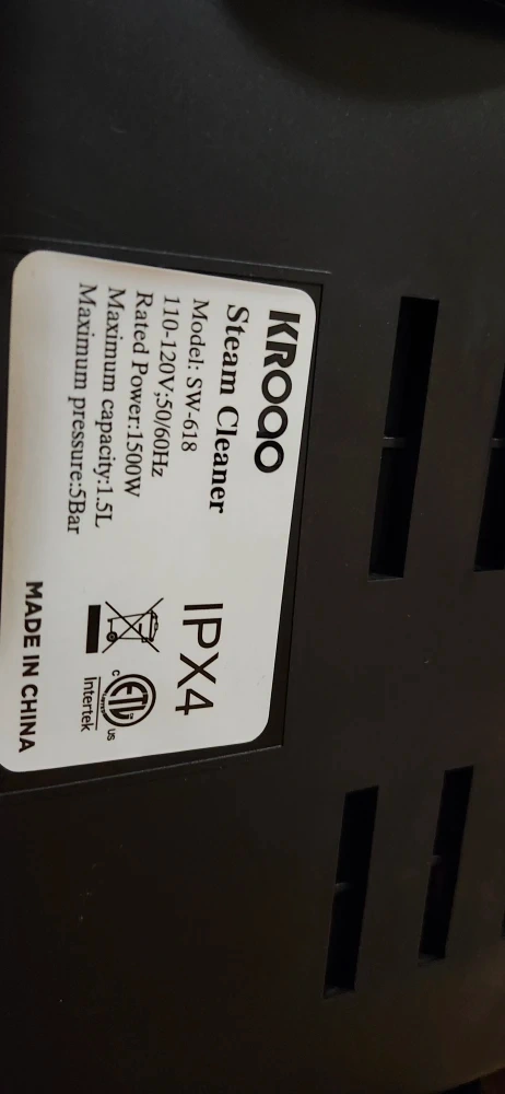 Selling a Krooo steam cleaner, model SW-618. It has a 1.5L maximum capacity and a maximum pressure of 5 bar. It's rated at 110-120V~50/60Hz and 1500W. Perfect for getting those hard to reach spots!