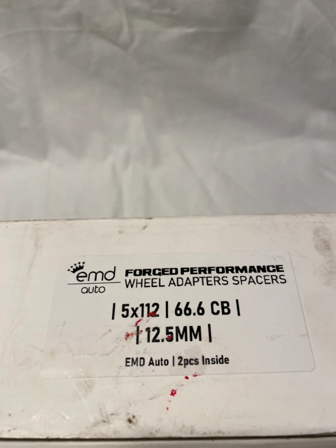 I have a set of EMD Forced Performance wheel adapters/spacers for sale. They are 5x112 with a 66.6 CB and 12.5mm. Comes with all the bolts shown in the pictures