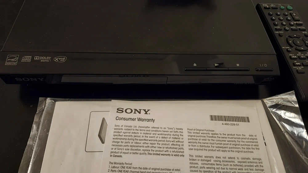 Selling a Sony DVD player in great condition! It comes with the remote and all the necessary cables for hookup. Perfect for watching your favourite movies! Batteries not included.