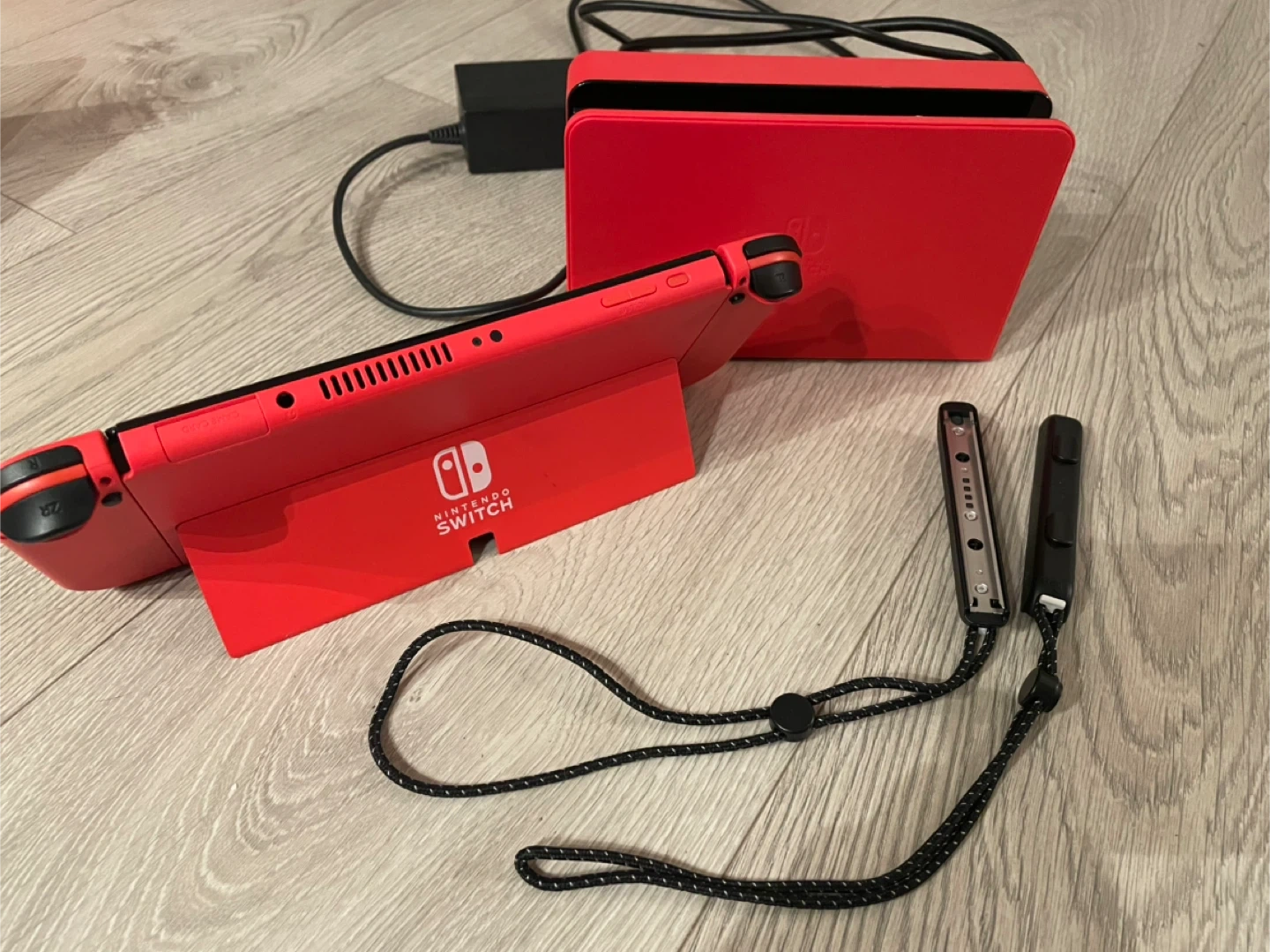 Selling a red Nintendo Switch! It comes with the dock, charger, and Joy-Con controllers with straps. Ready for a new player!