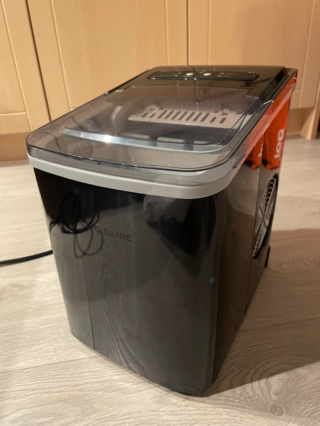 Selling a Frigidaire portable ice maker in black. It's in good condition and perfect for making ice quickly at home!