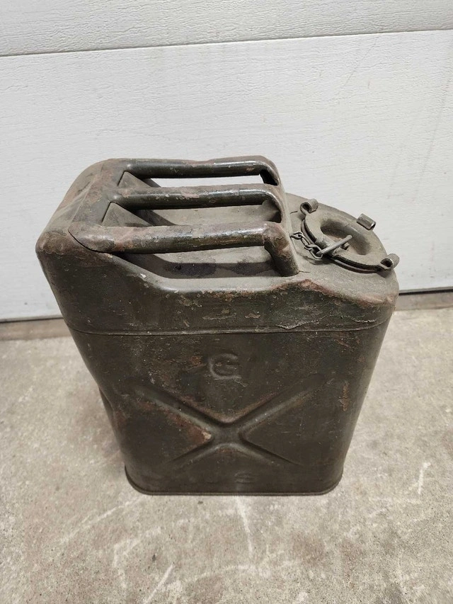 This is a vintage US Army gas can, showing its age with a weathered patina and rustic charm. It would look great in your vintage militaria collection. This can has a lot of character, perfect for display. Whether you're decking out a man cave or adding to your collection, this gas can is ready to find its new home. If the ad's up, it's still up for grabs!
